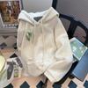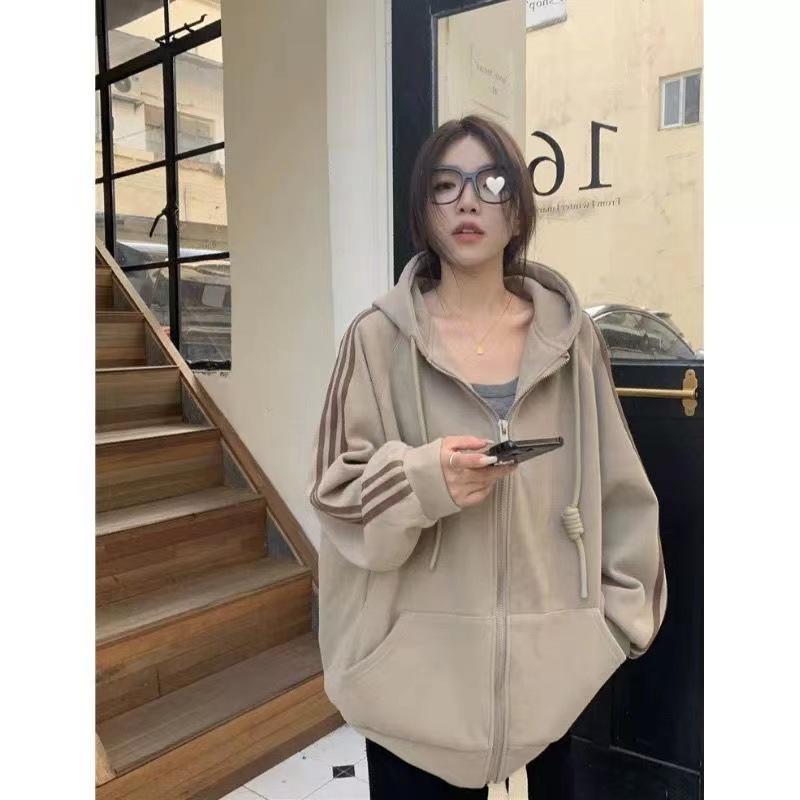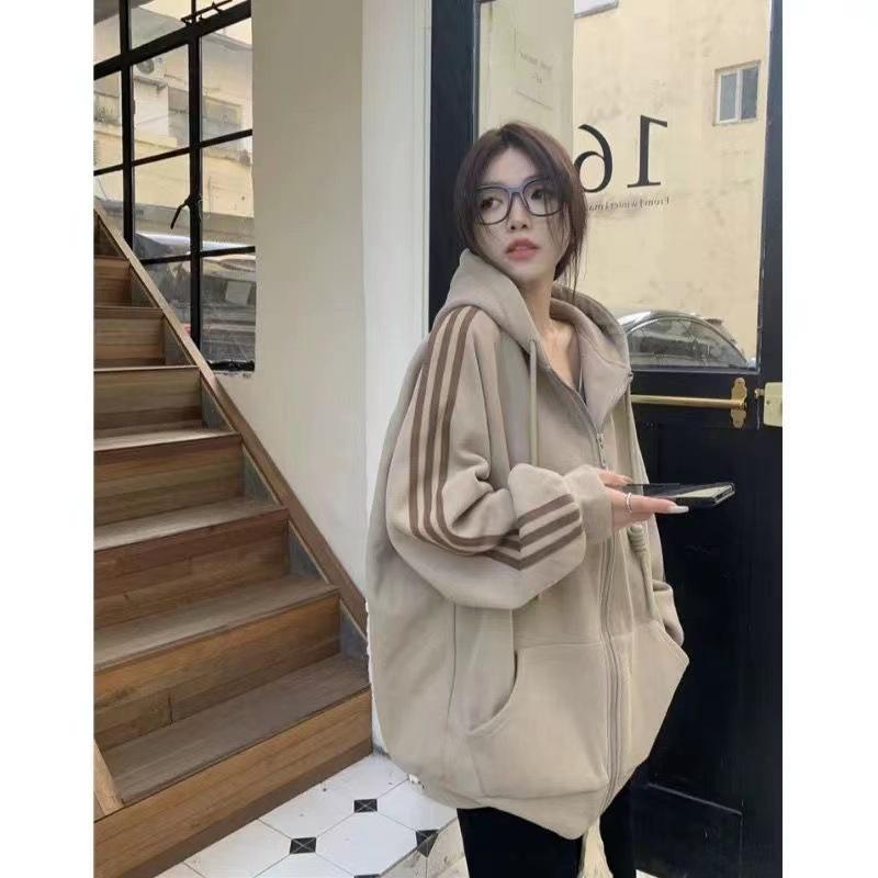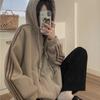 Estilo Americano Retro Otoño e Invierno Nuevo Suelto Talla Grande Manga Larga Cárdigan Top con forro polar Engrosado Sudadera con Capucha Chaqueta para Mujer Trendy