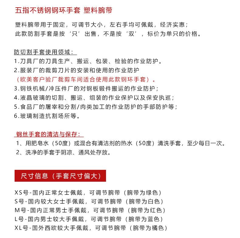 1. Los guantes de malla de acero vienen grandes. Consulte el siguiente contenido para la selección de talla: