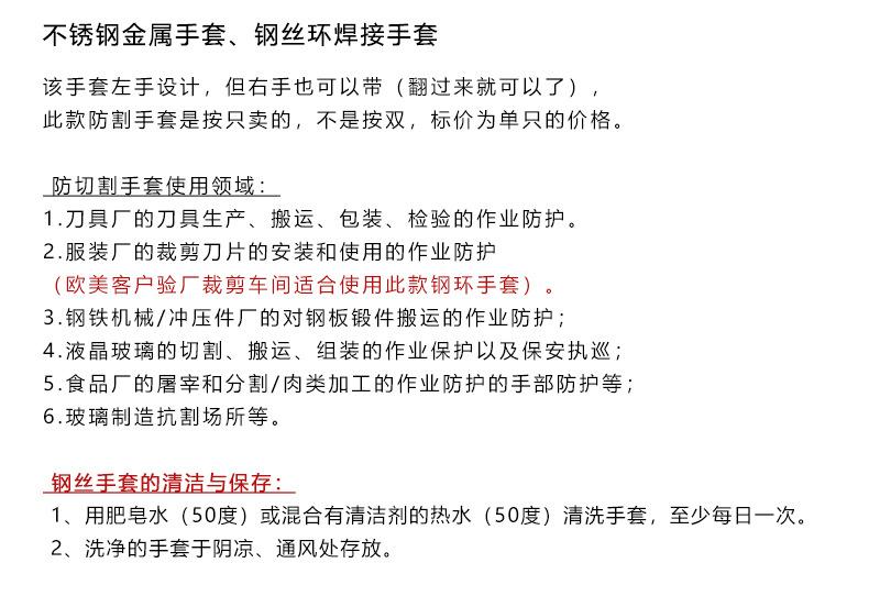 2、Referencia para la selección de tallas de guantes tejidos de alambre de acero estilo económico como sigue: