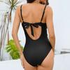 Traje de baño de una pieza para mujer, color sólido, calado, almohadilla pectoral desmontable