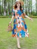 Nuevo Vestido de Algodón y Seda de Alta Gama Verano 2026, Elegante Vestido de Playa Estilo Sanya para Mamás Tallas Grandes, Efecto Adelgazante