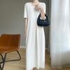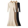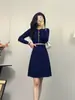 Vestido de Punto de Manga Larga Negro Otoño Nuevo 2025 Mujer Socialité Falda Corta Cintura Adelgazante Temperamento Falda Plisada