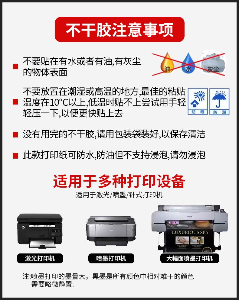 10c matte inkjet synthetic/removable adhesive/140g white background; a4 (210*297mm)-bulk