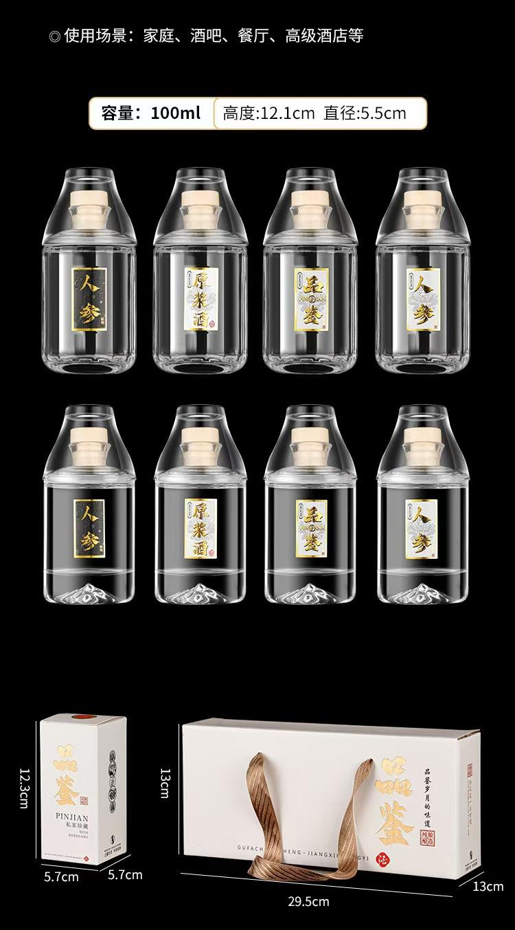 100ml faceted bottle + ginseng wine sticker; transparent