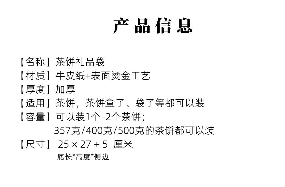 Bolsa de Regalo de Té Pu'Er 357g Pastel de Té Bolso de Mano Bolsa de Regalo de Té Blanco Fuding Bolsa de Papel Kraft Engrosada