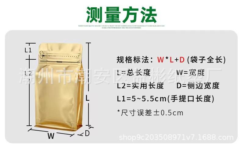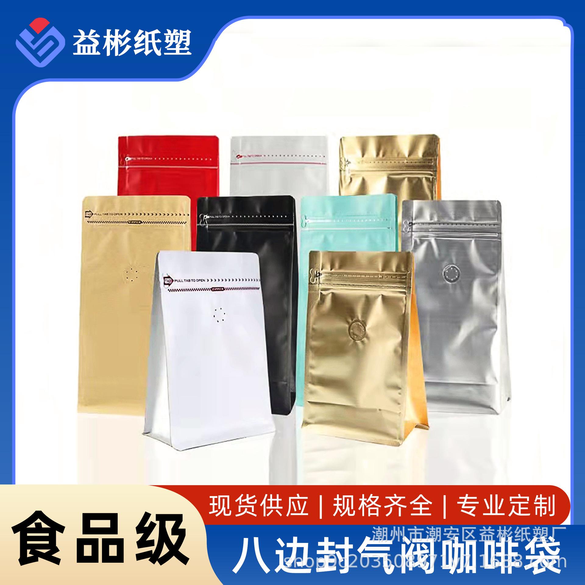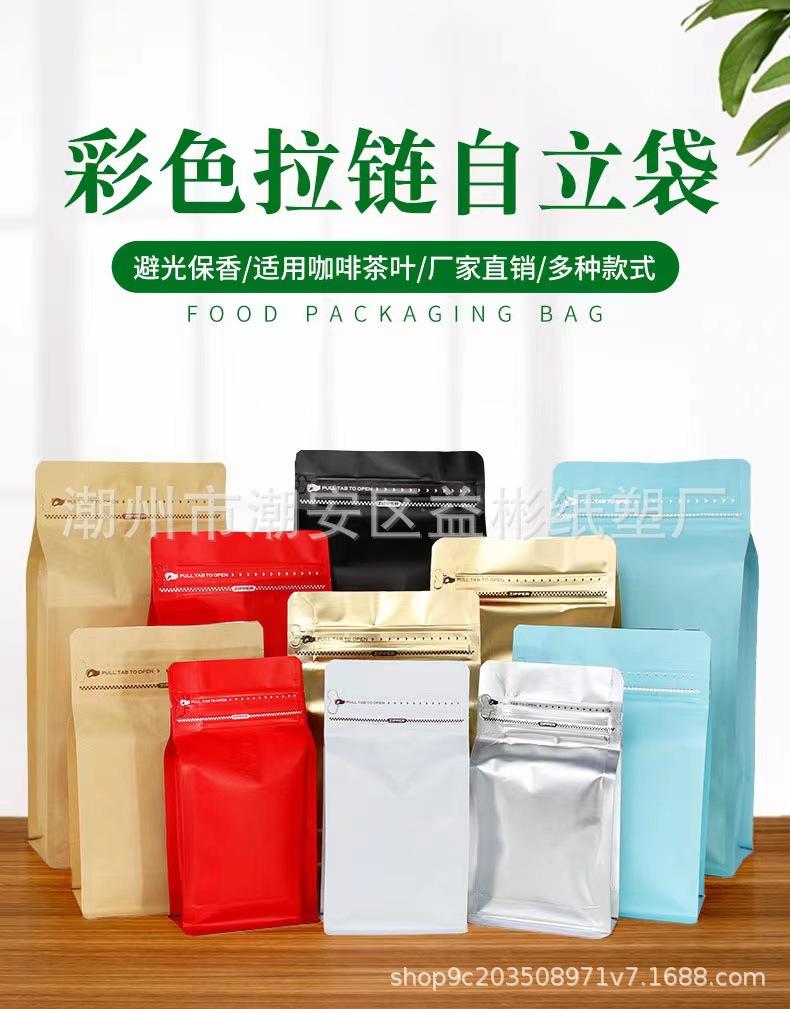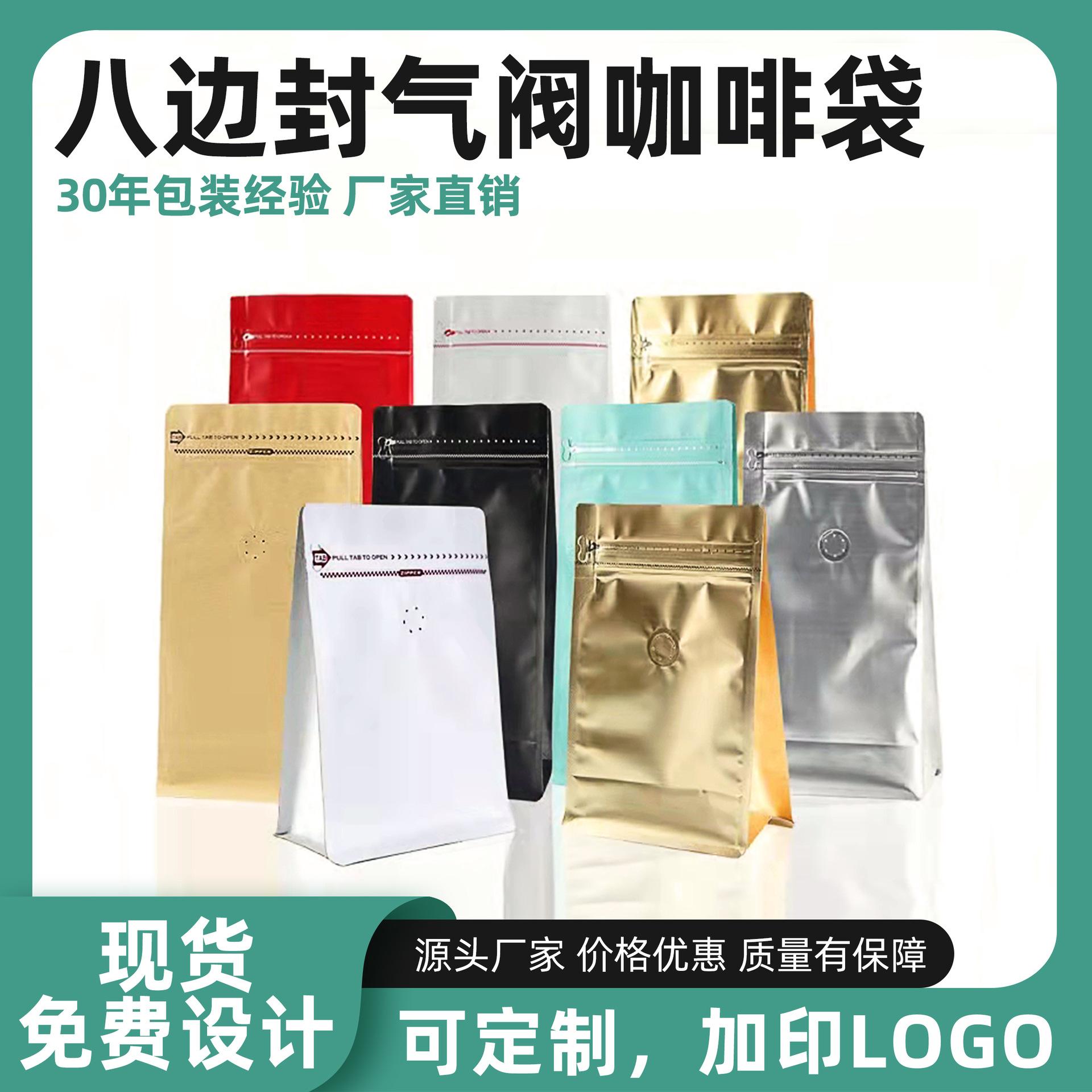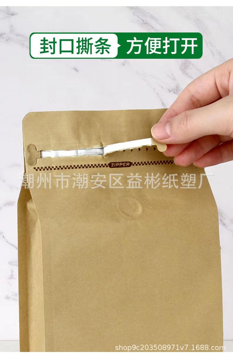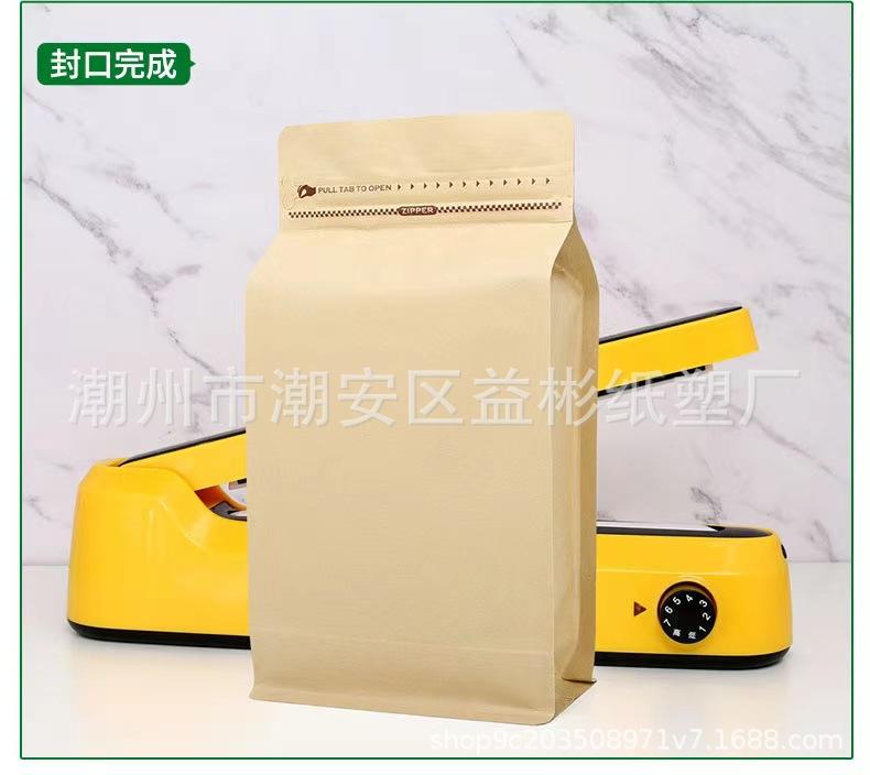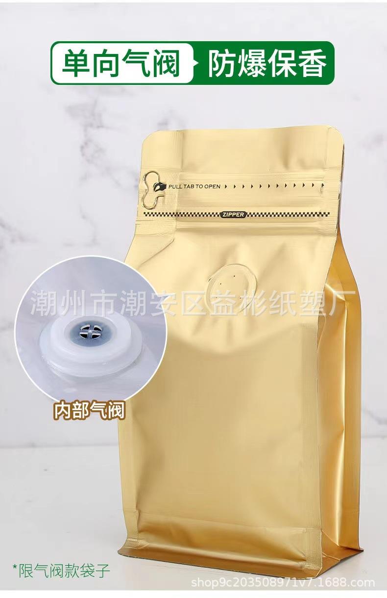 Bolsa de embalaje para granos de café papel kraft de aluminio sello de ocho lados bolsa sellada válvula de aire unidireccional cremallera lateral punto autosellante¥0,48Compre ya