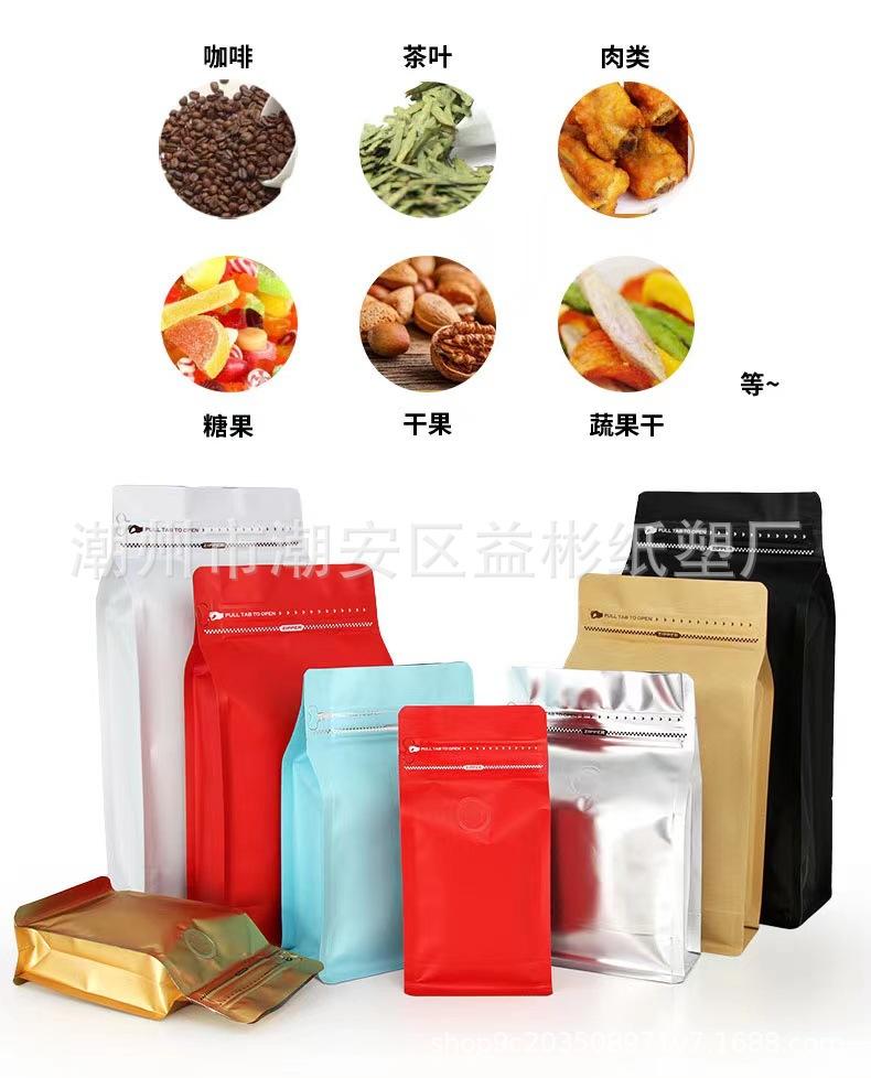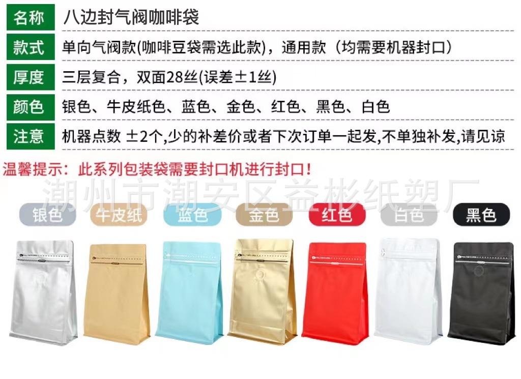 Bolsa con válvula de aire sellada por ocho lados para granos de café, media libra, una libra, polvo de café, comida, papel de aluminio, bolsa ziplock, bolsa sellada para materia prima de horneado¥0,63Compre ya