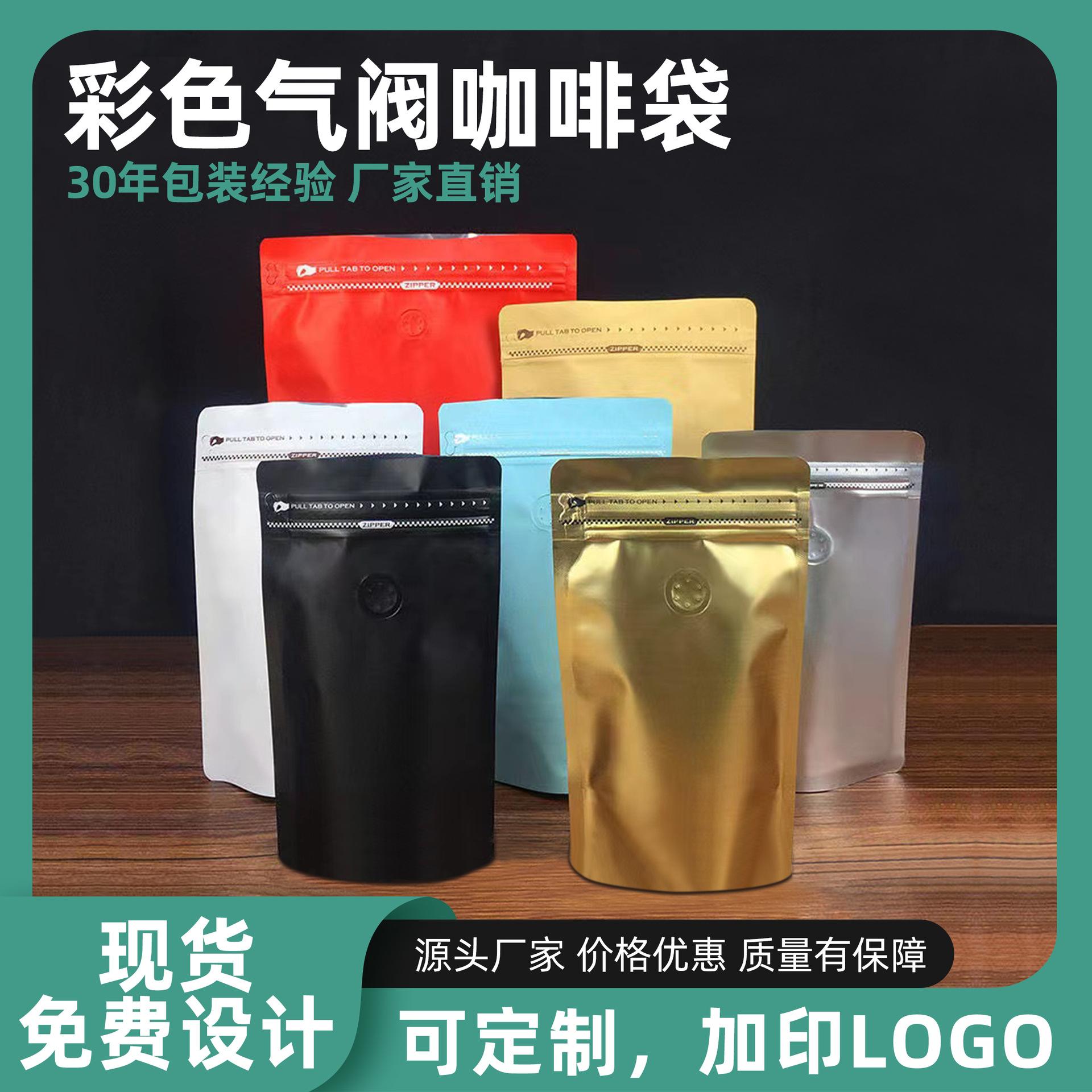 Bolsa de café de color con válvula media libra una libra dos libras bolsa autosoportada engrosada cremallera lateral bolsa para empaque de grano de café bolsa de té¥0,39Compre ya