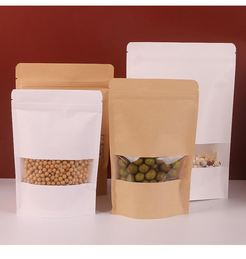 Bolsa de Embalaje de Papel Kraft Personalizada Bolsa Ziplock Ventana Esmerilada Bolsa de Papel Kraft Bolsa para Embalaje de Alimentos Bolsa de Papel Kraft para Té