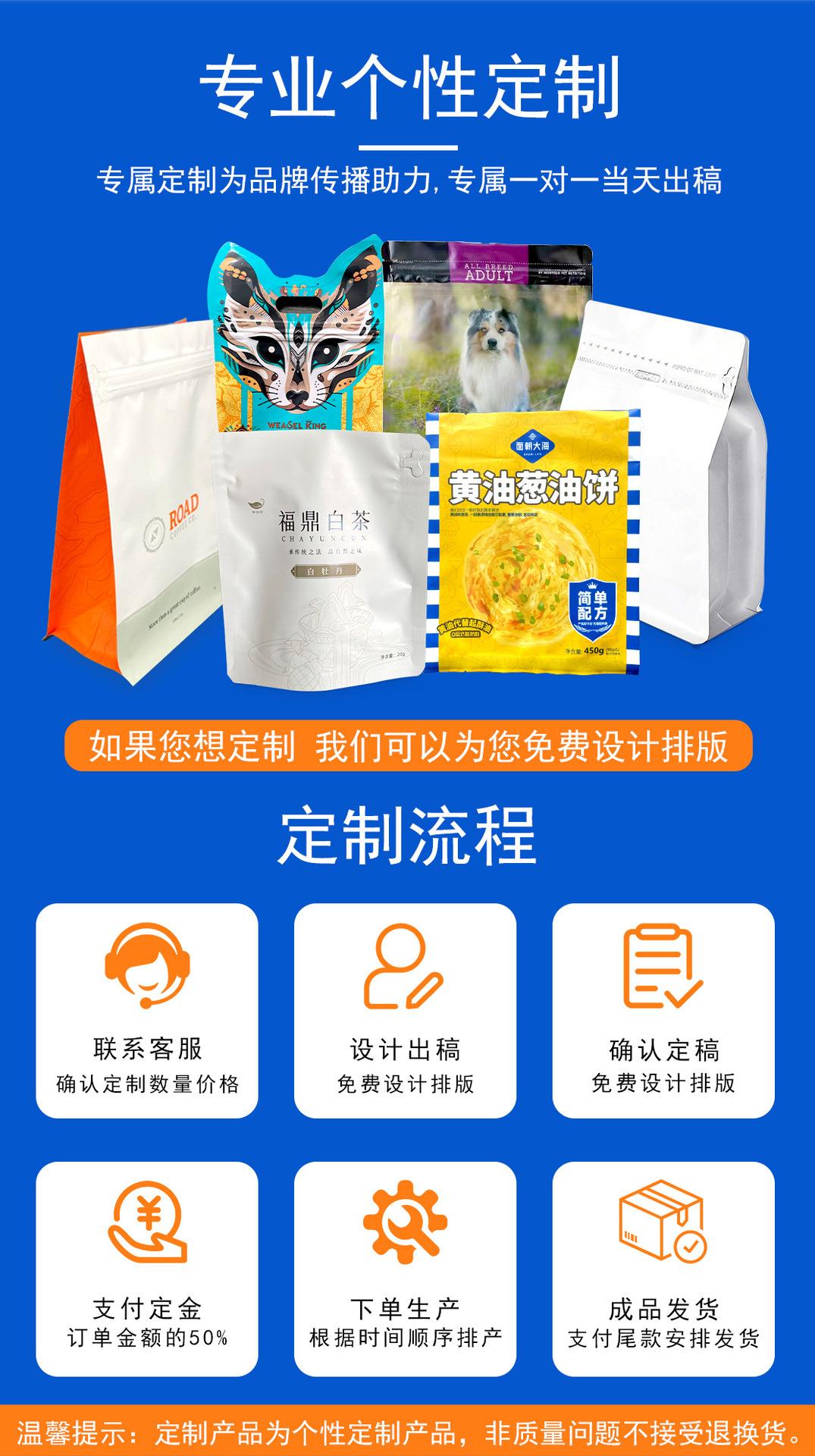 Personalized eight-sided sealed zipper self-standing moisture-proof vacuum food-grade packaging bag pu'er tea sealed bag
