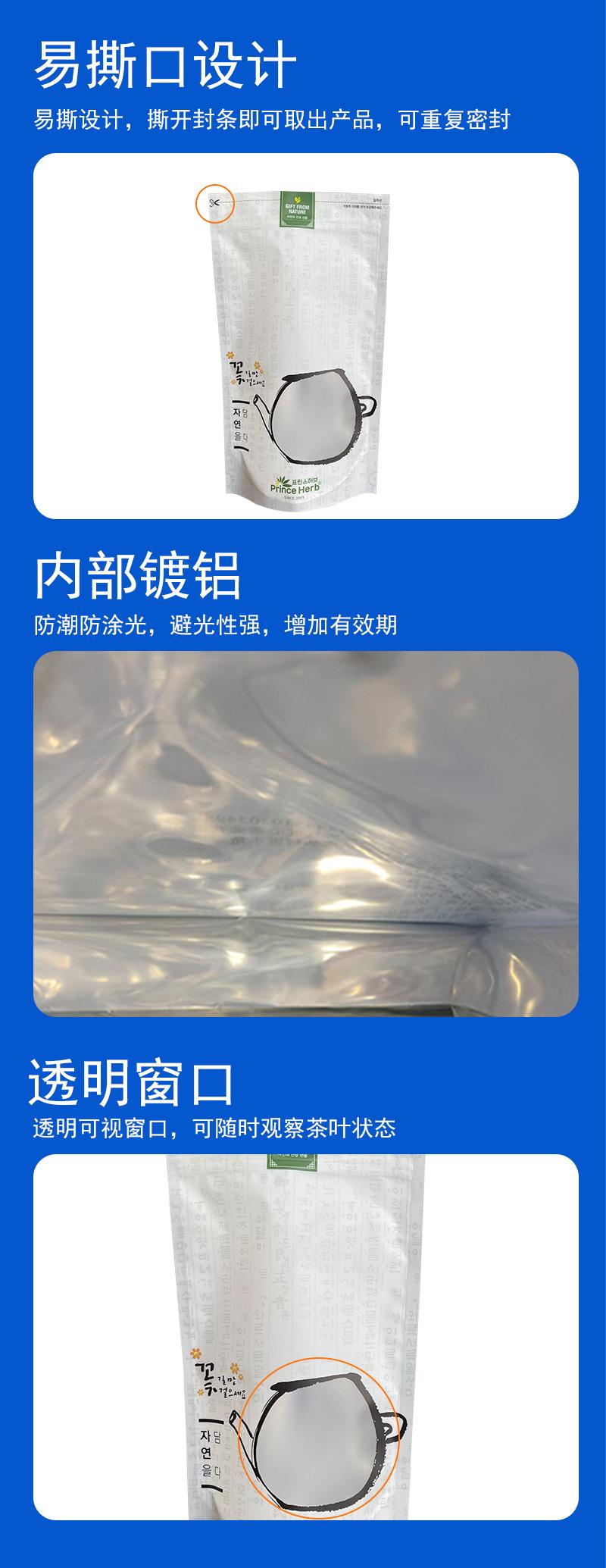 Tea aluminum foil bag personalized eight-side sealed zipper self-standing moisture-proof vacuum food grade packaging bag