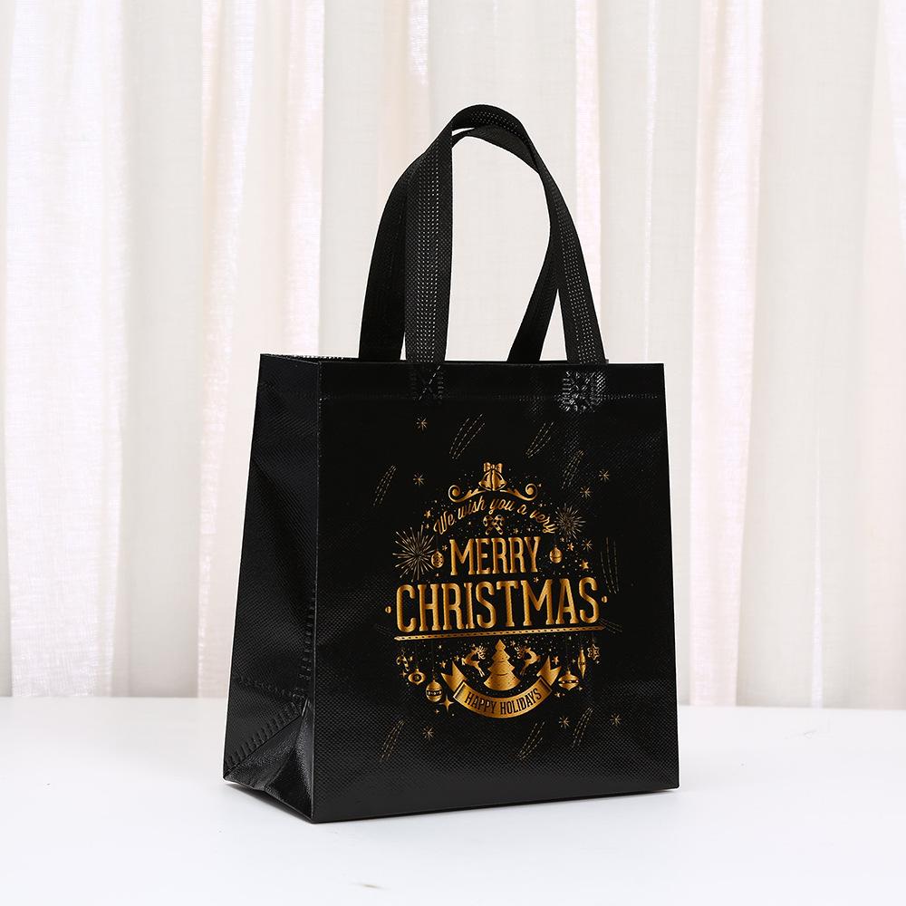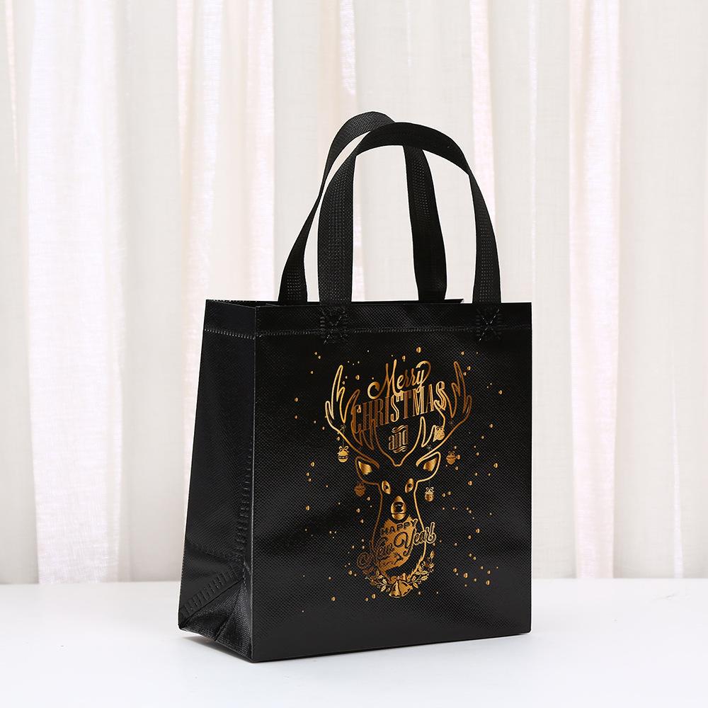 Bolsa Navideña Negra y Dorada Transfronteriza de Tela No Tejida, Lujo Accesible Estampado en Caliente Bolso de Mano Festivo, Bolsa de Dulces para Regalo de Navidad para Niños