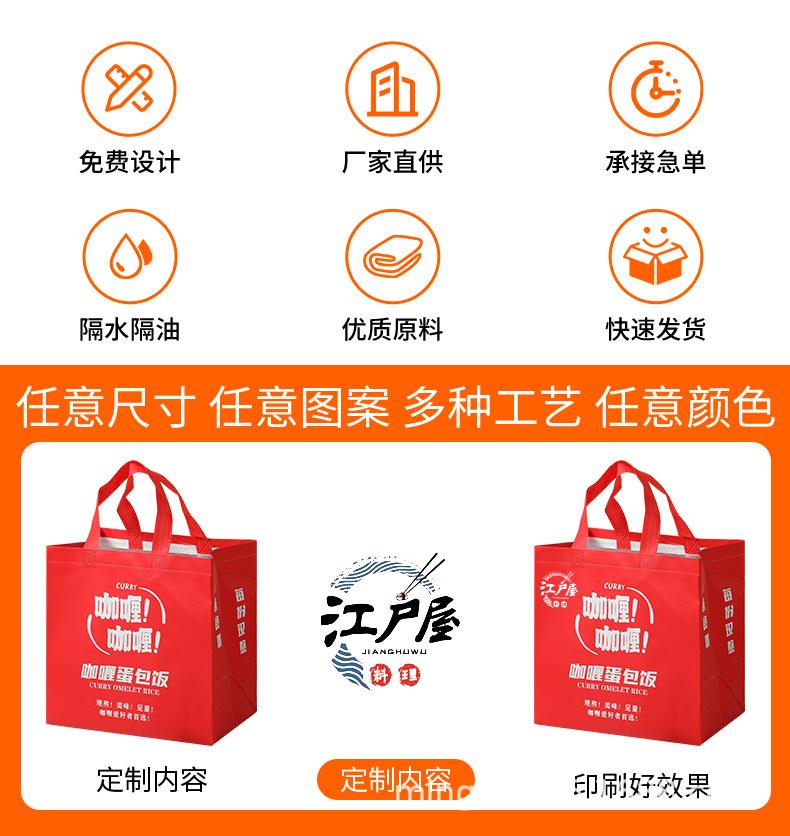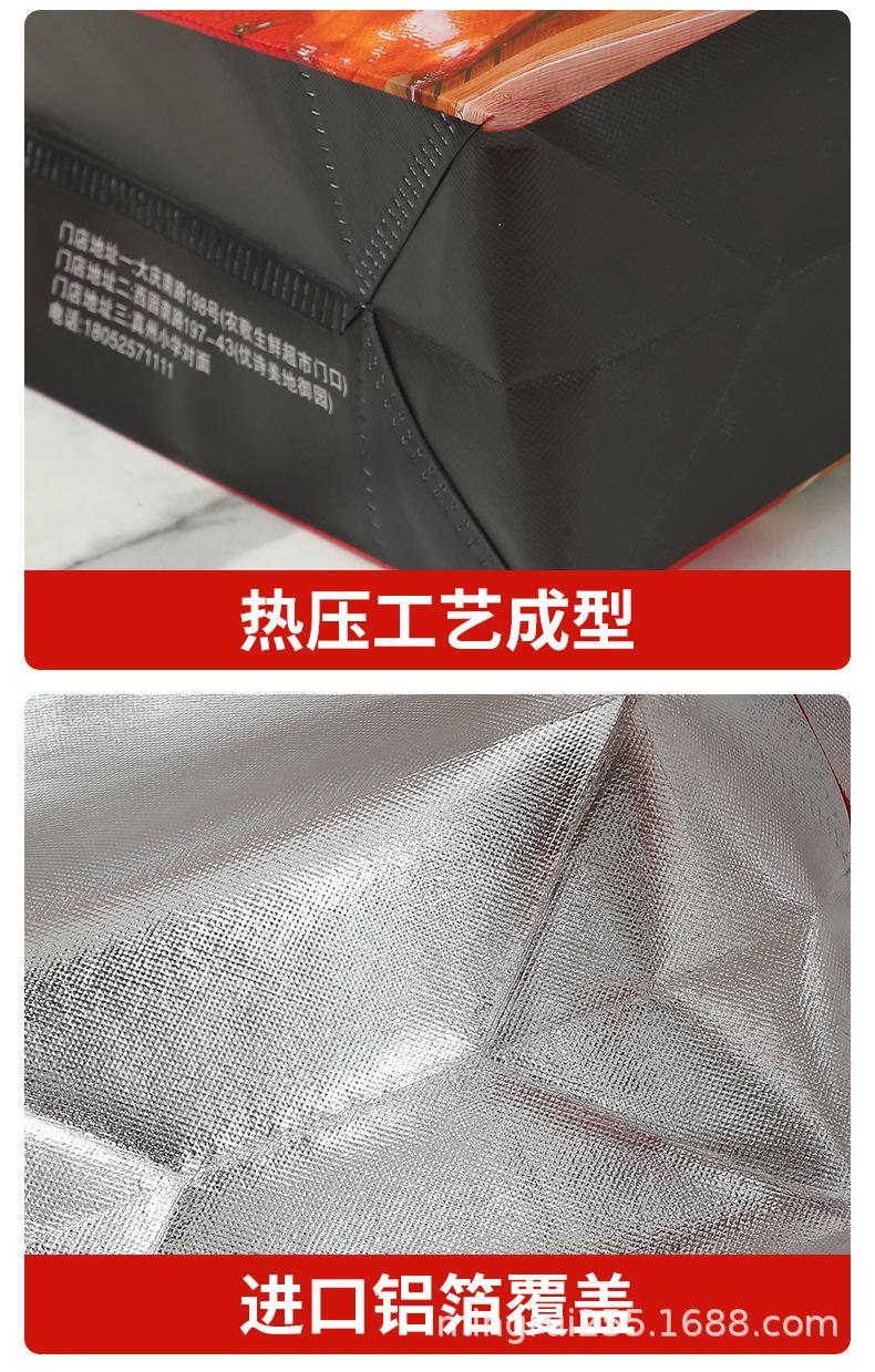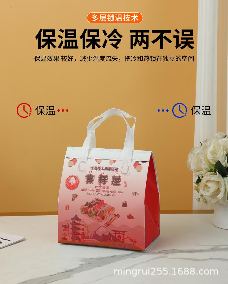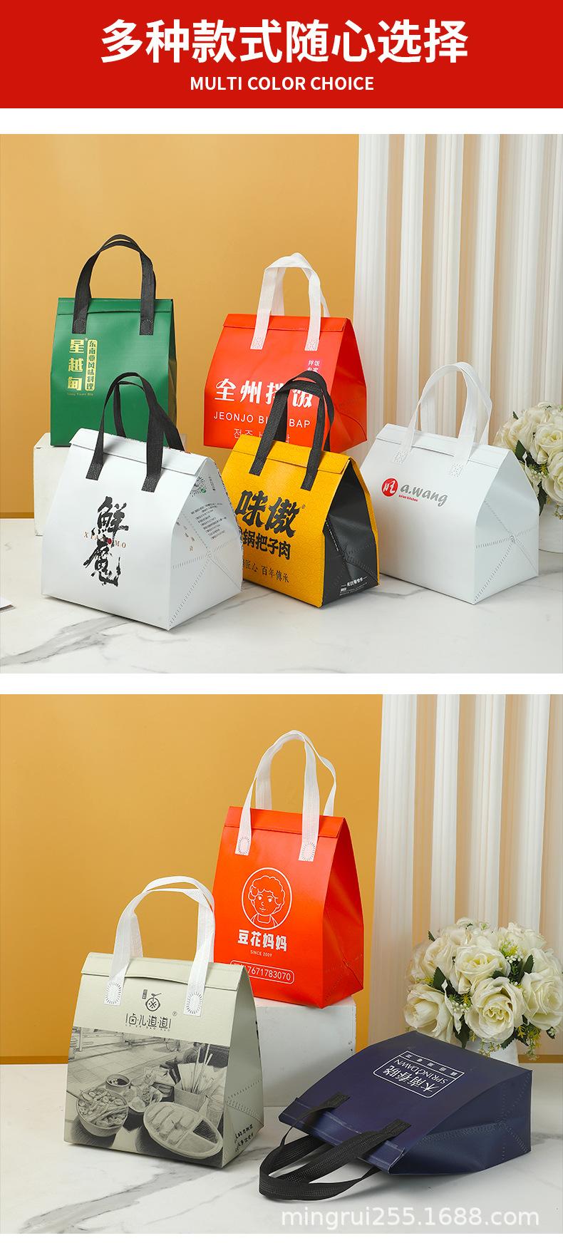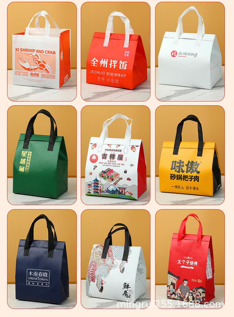 Bolsa para llevar, bolsa de embalaje, material no tejido, aislamiento térmico de invierno, bolso de mano grueso, diseño gratuito, logotipo personalizado.