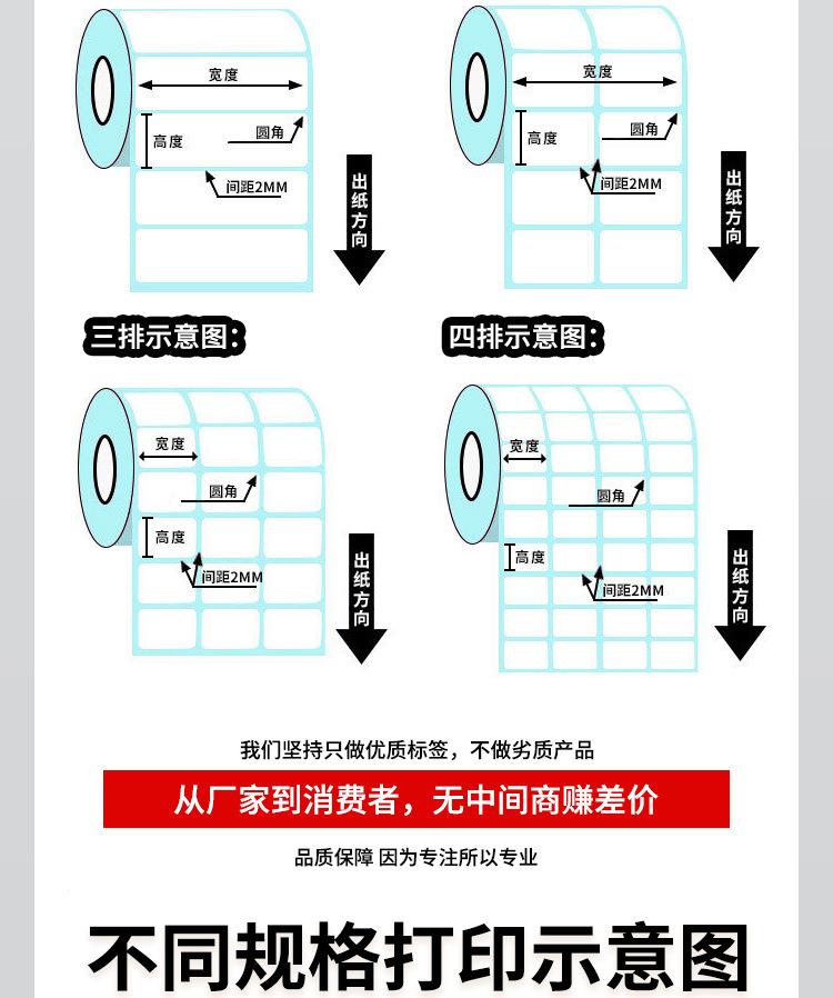 Papel Térmico de Tres Pruebas Etiqueta Autoadhesiva Sticker Papel para Impresión de Código de Barras 100X100X150 Serie 100