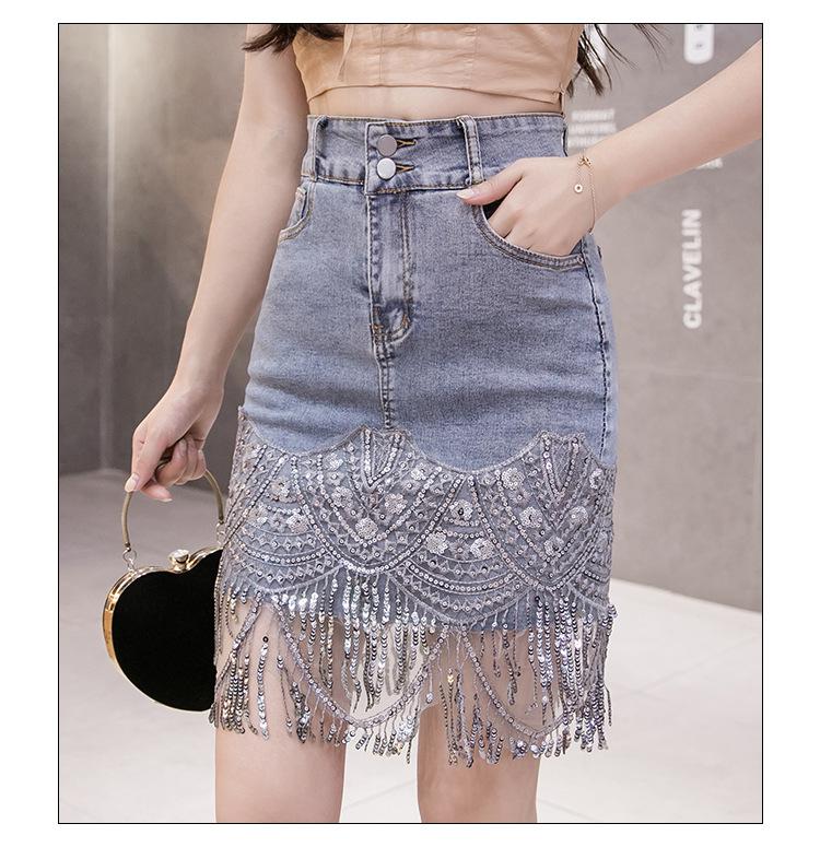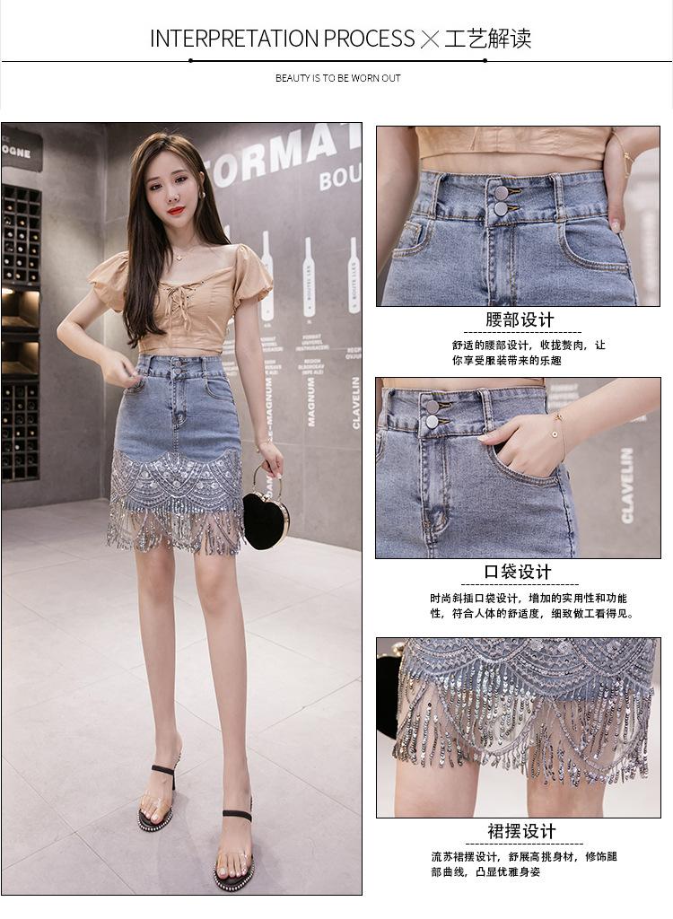Falda de mezclilla con borlas nueva 2023 Falda Pantalones de mujer Falda Cadera Primavera y verano Estilo coreano Falso dos piezas Forrada Falda corta