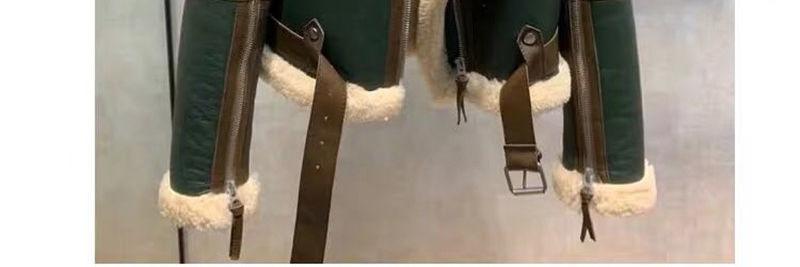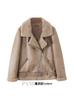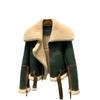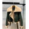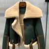Invierno 2024 nuevo costuras verdes solapa grande ropa de motociclista para mujer abrigo de lana esquilada grueso de una pieza de piel corta