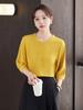 Camisa de Manga Tres Cuartos para Mujer 2025 Primavera y Otoño Nueva Camisa Retro de Cuello Redondo Versátil Casual Top de Manga Corta Amarillo a la Moda