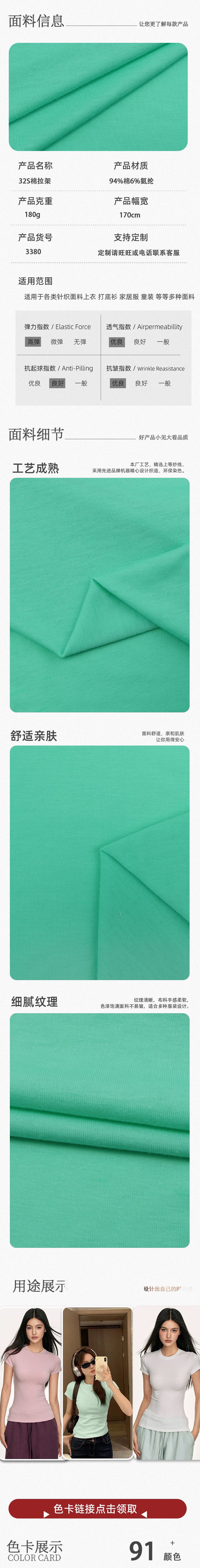 Playera de Algodón Puro 32S Stretch Jersey Cepillado Primavera y Verano Tejido Jersey Liso 180g Algodón Suave Spandex Tejido Base