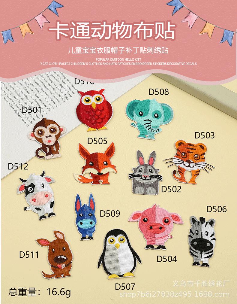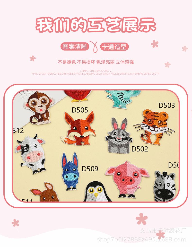 Nuevo Dibujo Animado Animal Bordado Autoadhesivo Tela Adhesiva Ropa Bolso Sombrero Aplique Decorativo Parche Agujero Accesorios de Ropa