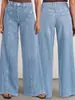 Jeans de Mujer de Moda Nueva Sueltos de Pierna Ancha a Cuadros Elásticos Pantalones de Mezclilla Moda Casual de Alta Calidad