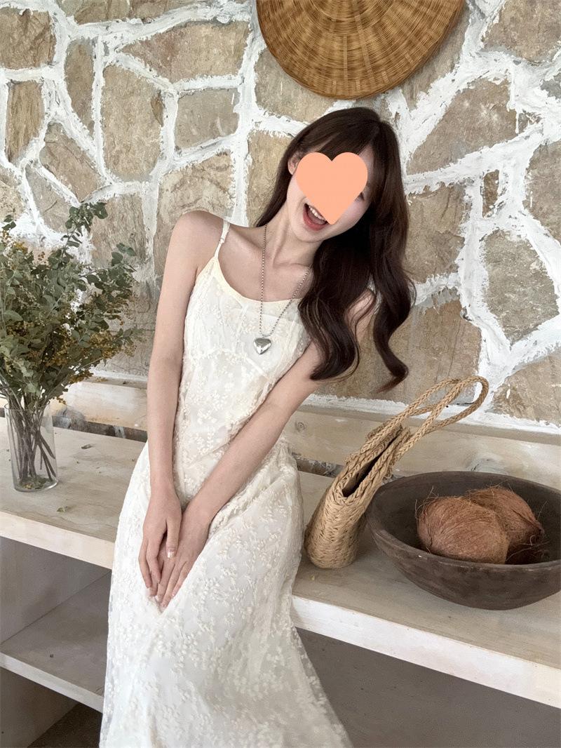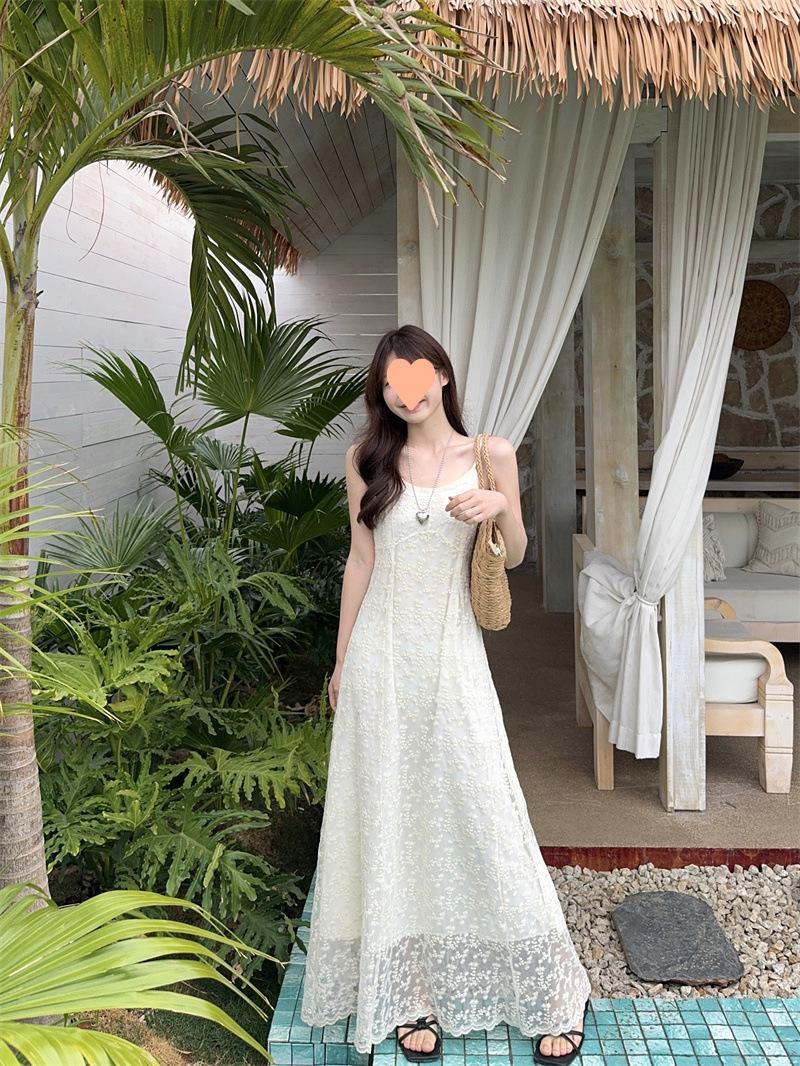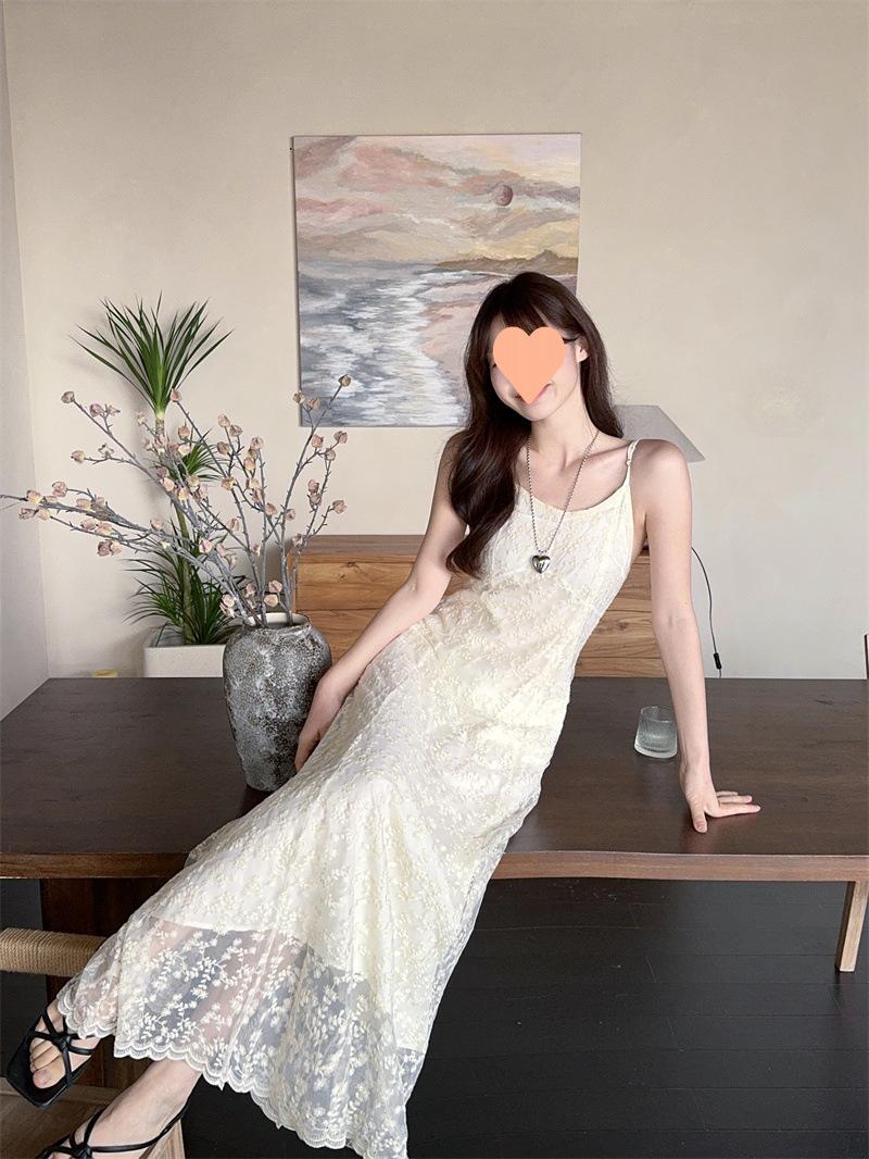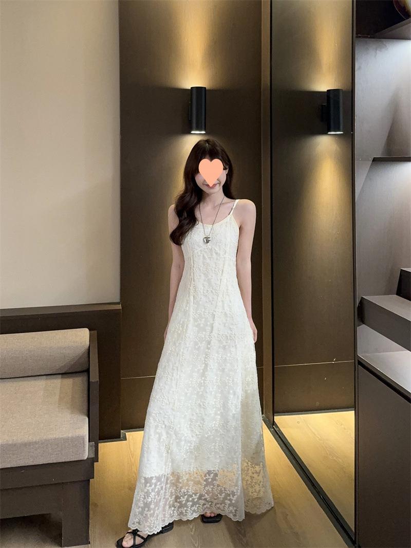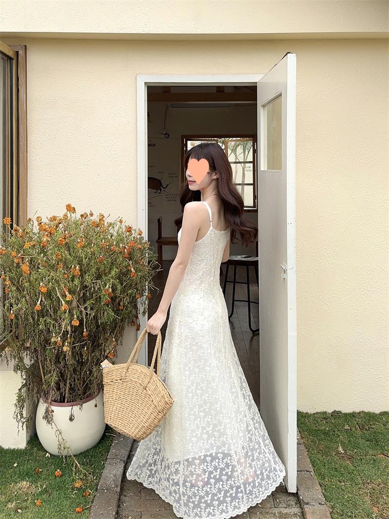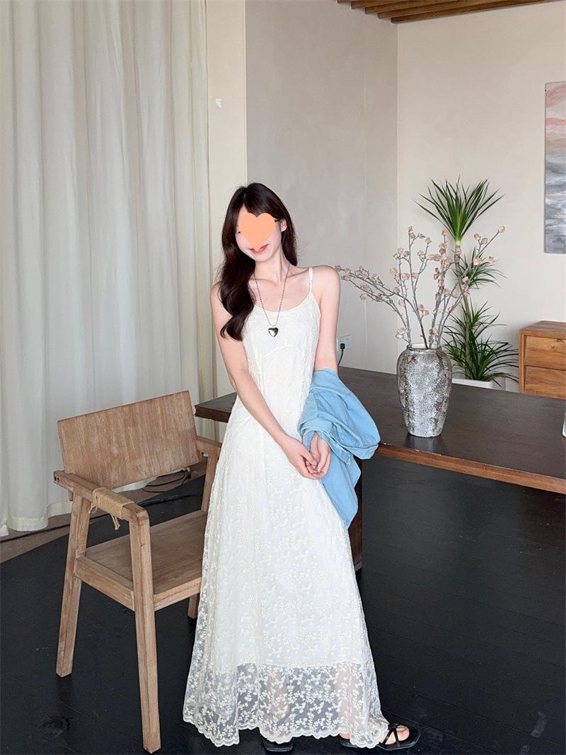2025 Vestido de Tirantes Bordado Estilo Puro Lujurioso para Mujer Verano Elegante a la Moda Cintura Adelgazante Chic Falda Larga Trendy