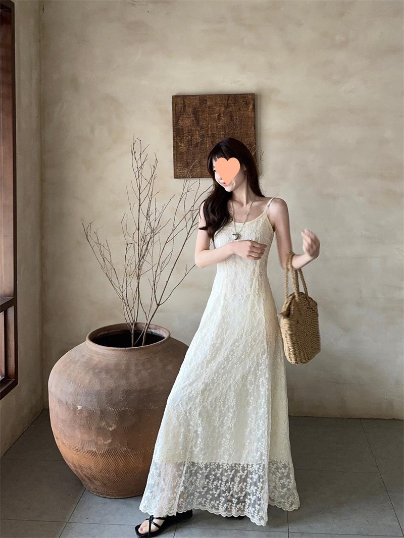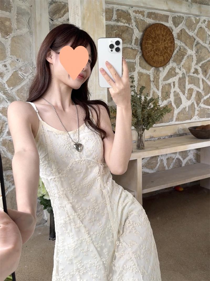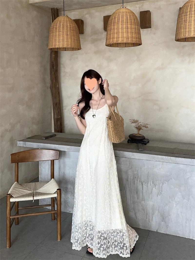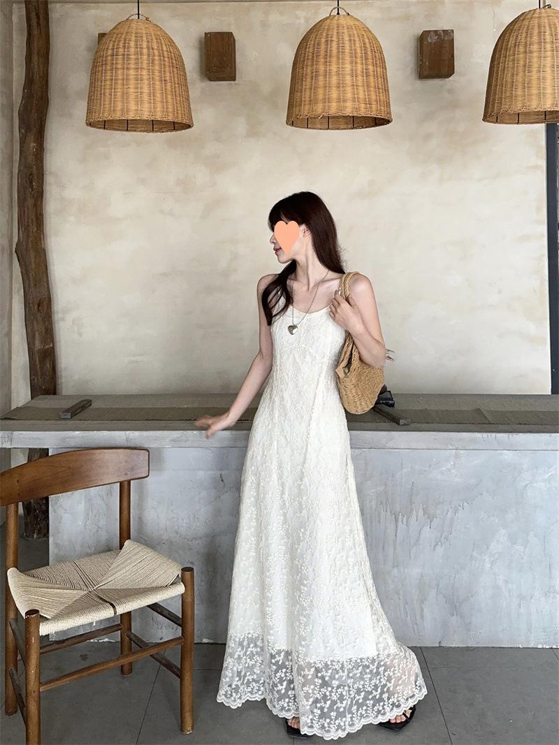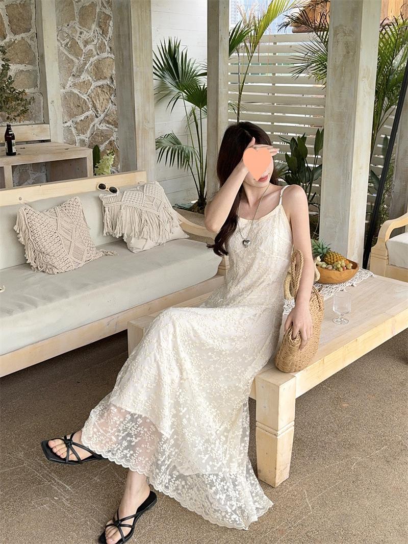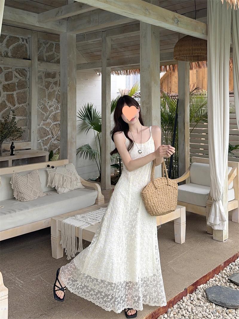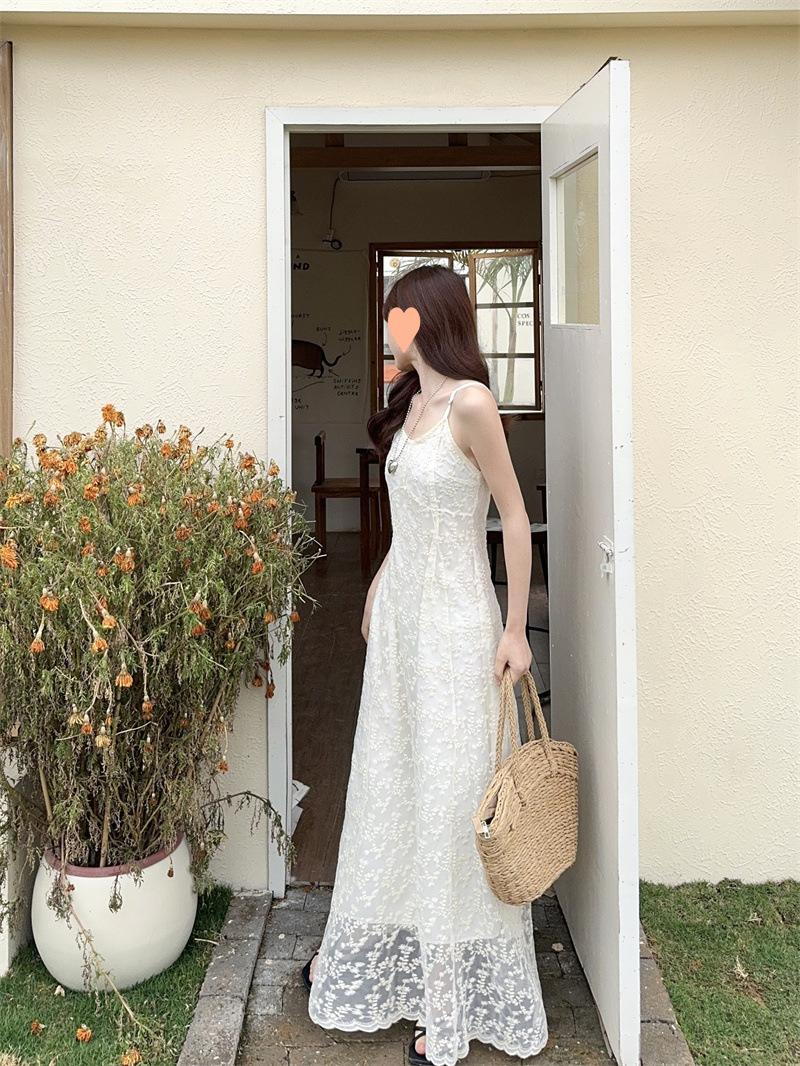 2025 Vestido de Tirantes Bordado Estilo Puro Lujurioso para Mujer Verano Elegante a la Moda Cintura Adelgazante Chic Falda Larga Trendy