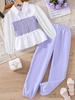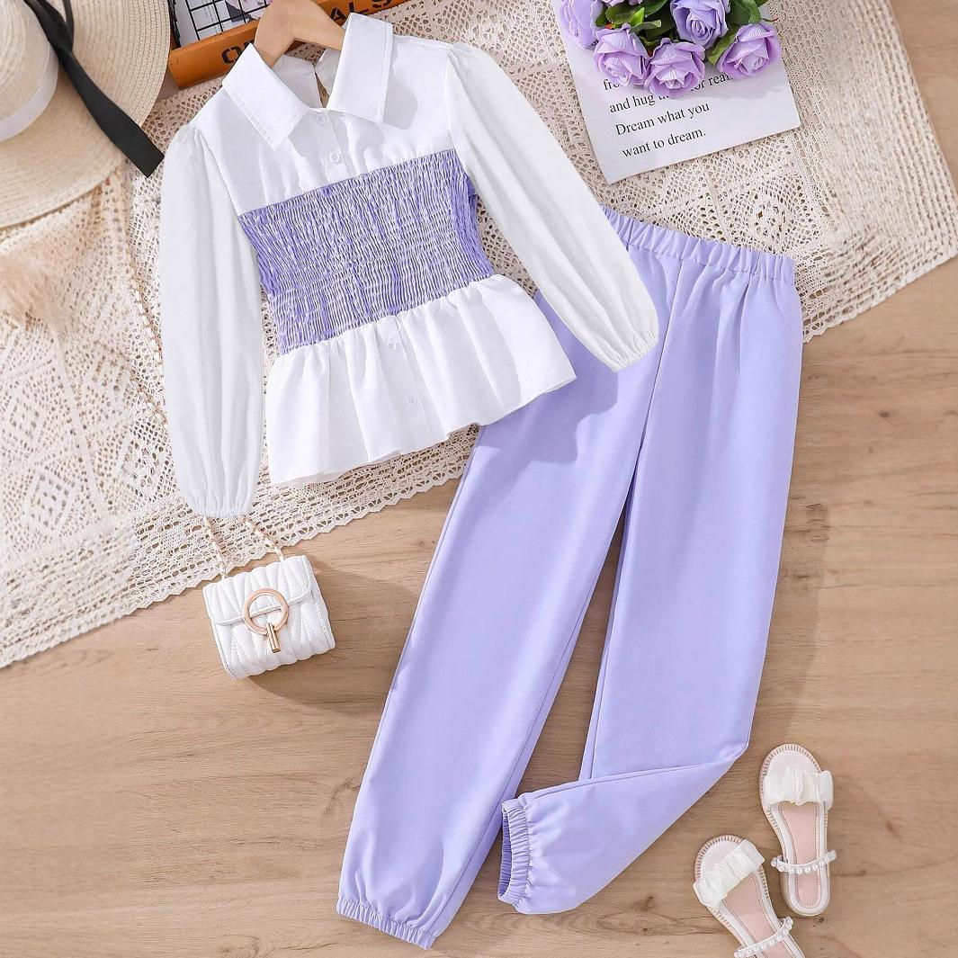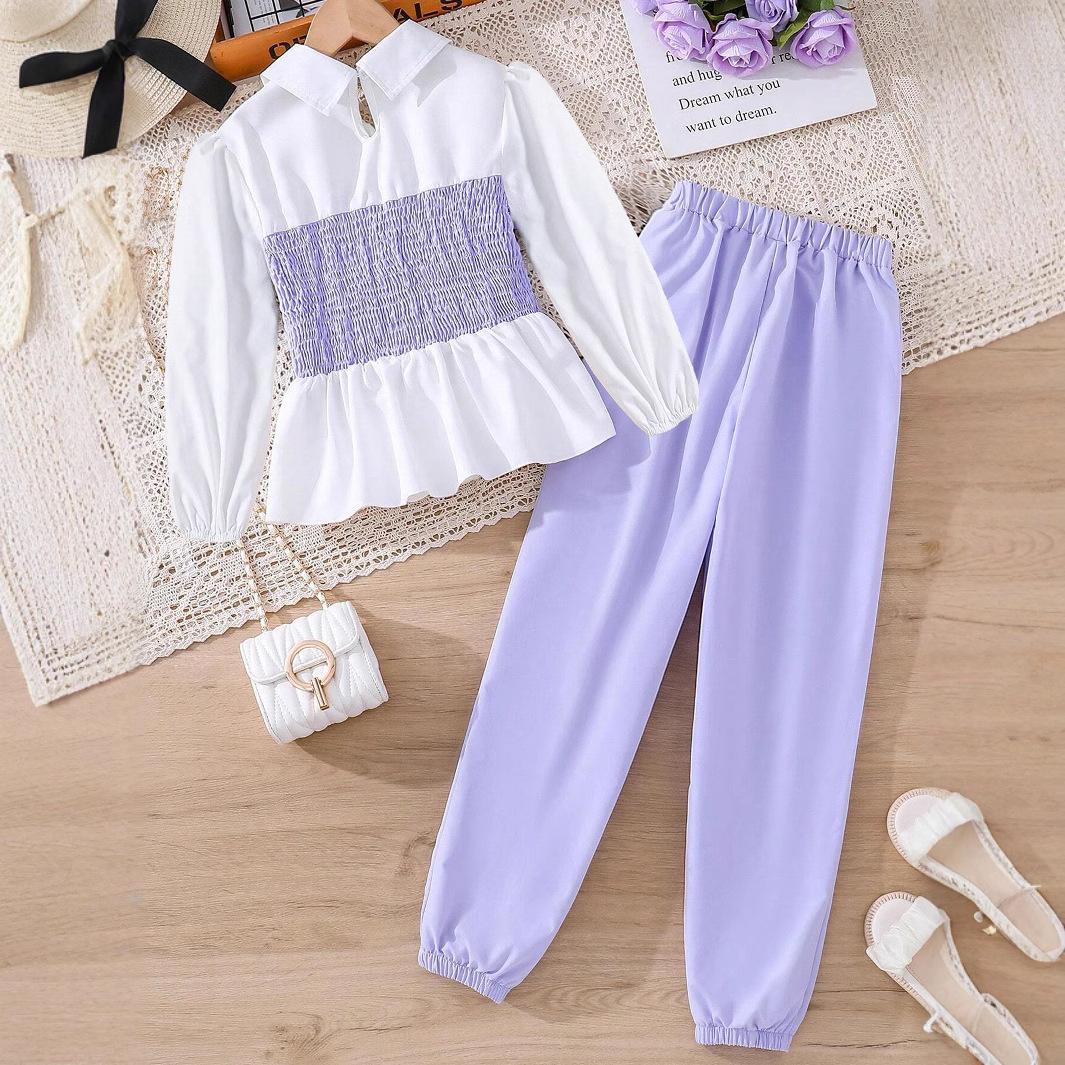 P8025 fábrica de comercio electrónico transfronterizo traje de moda para niñas otoño nuevo top de manga larga pantalones de color sólido cobertura