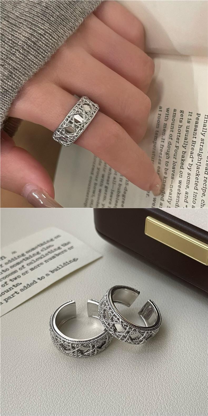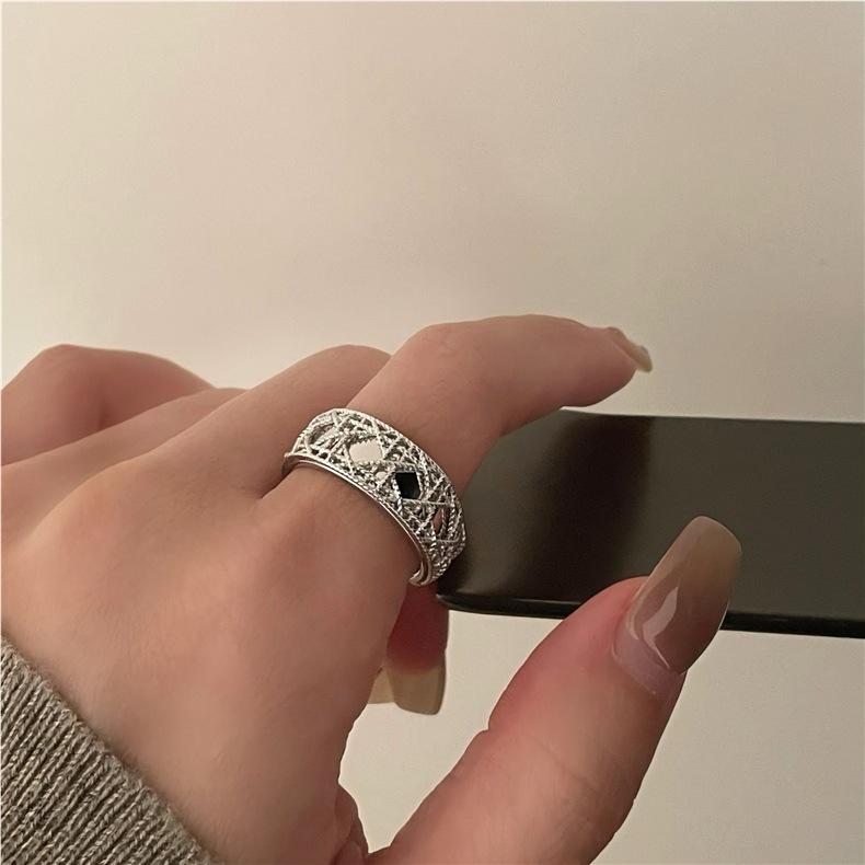 Anillo de Malla Tejida de Diamante Geométrico para Mujer, Anillo Abierto Moderno, Exquisito y Versátil, Anillo para Dedo Índice de Diseño Nicho de Tendencia