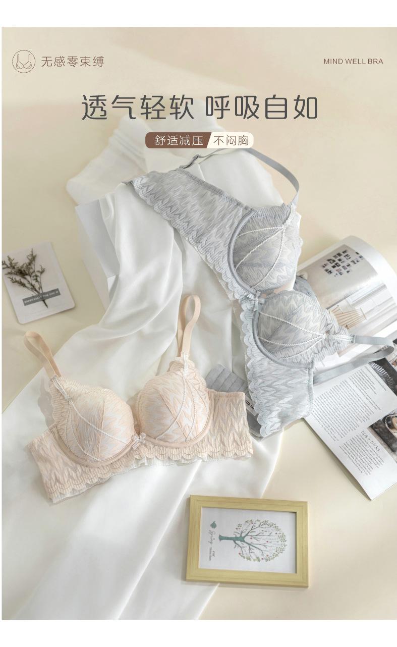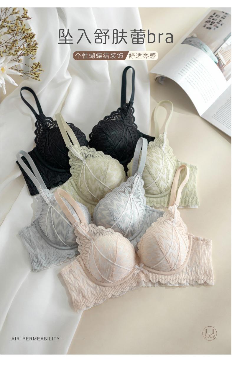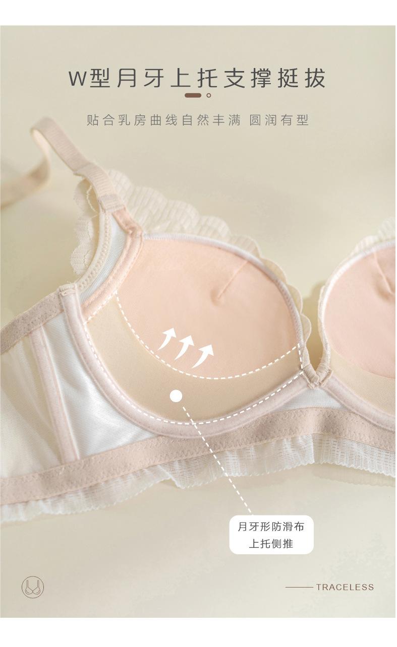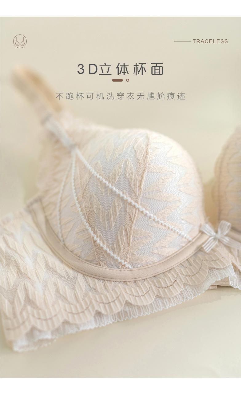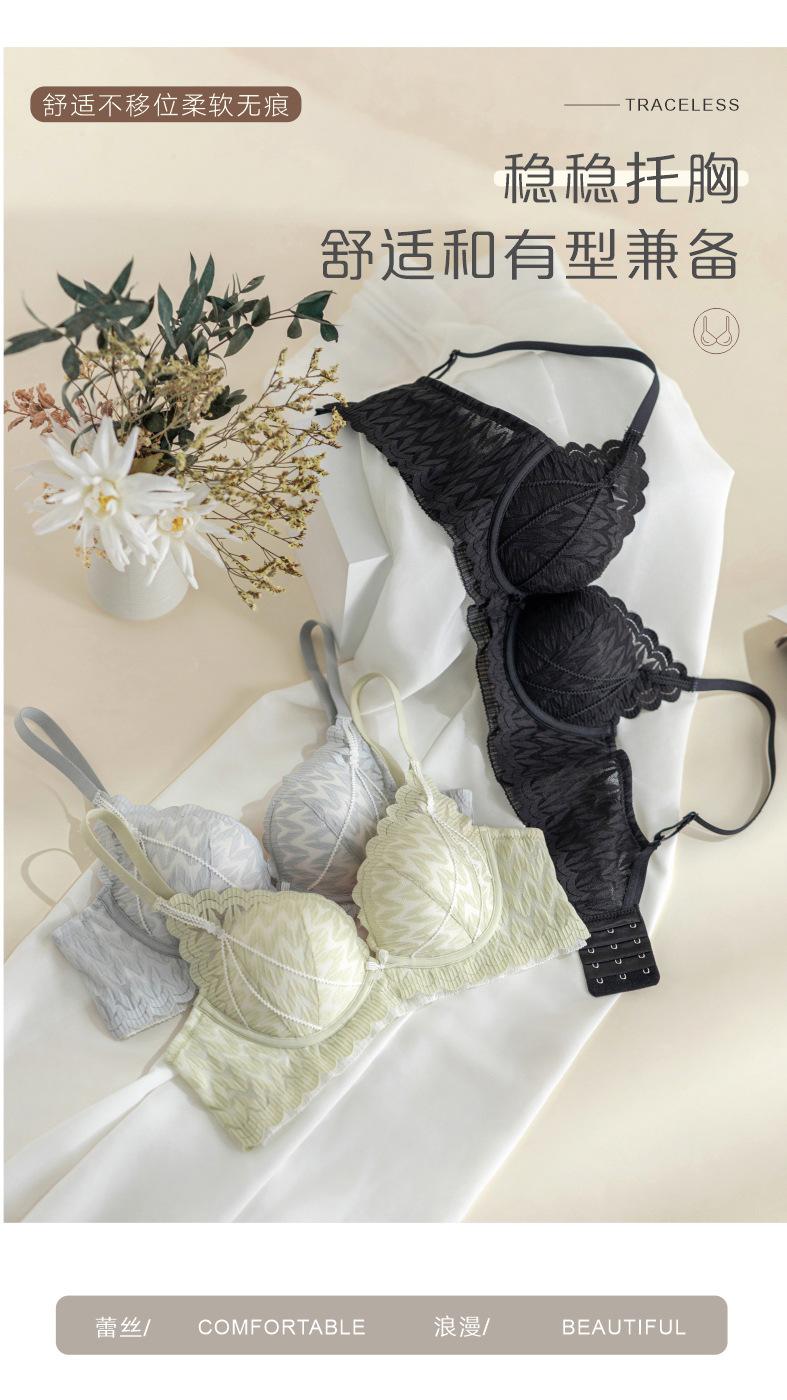 Ropa Interior de Encaje de Deseo Puro Delgada para Mujer Verano Inalámbrica Pecho Pequeño Sexy Push-Up Ajustable Suave Sujetador Set Estilo Caliente