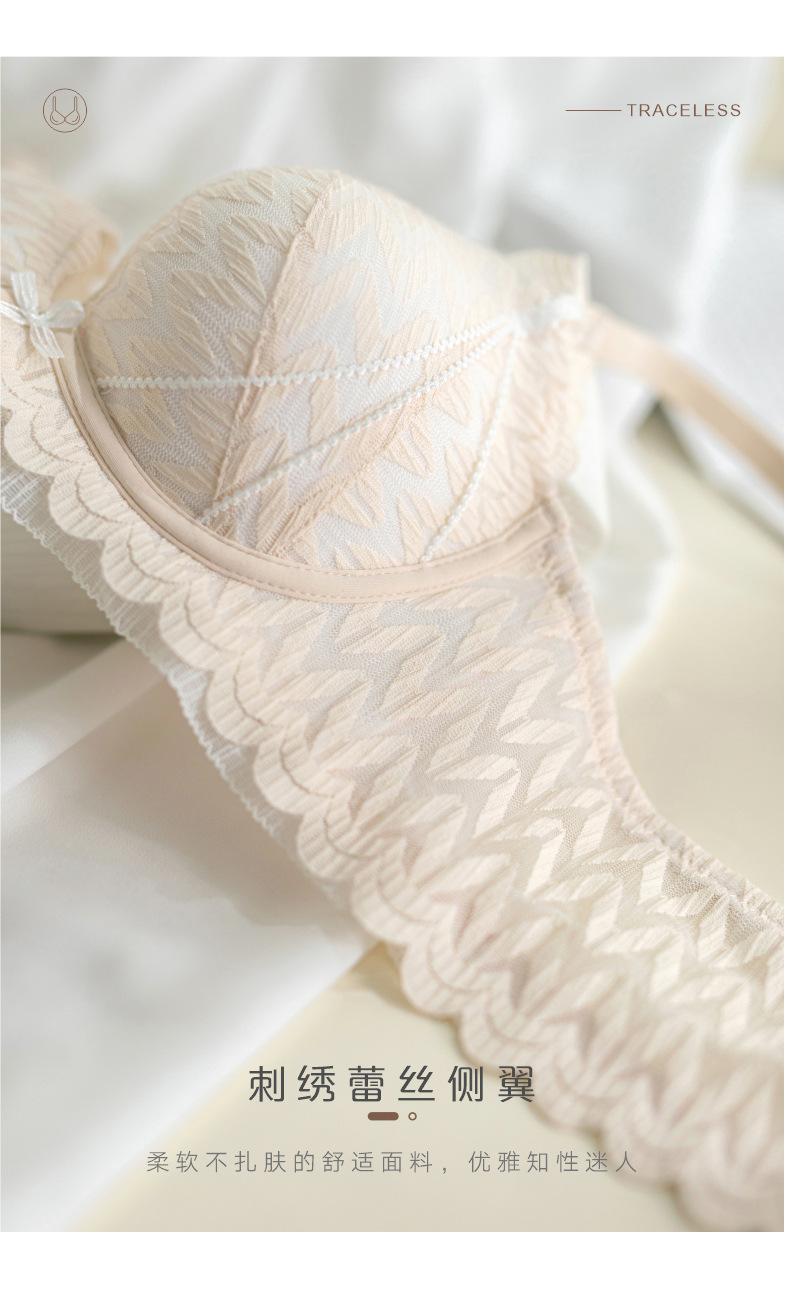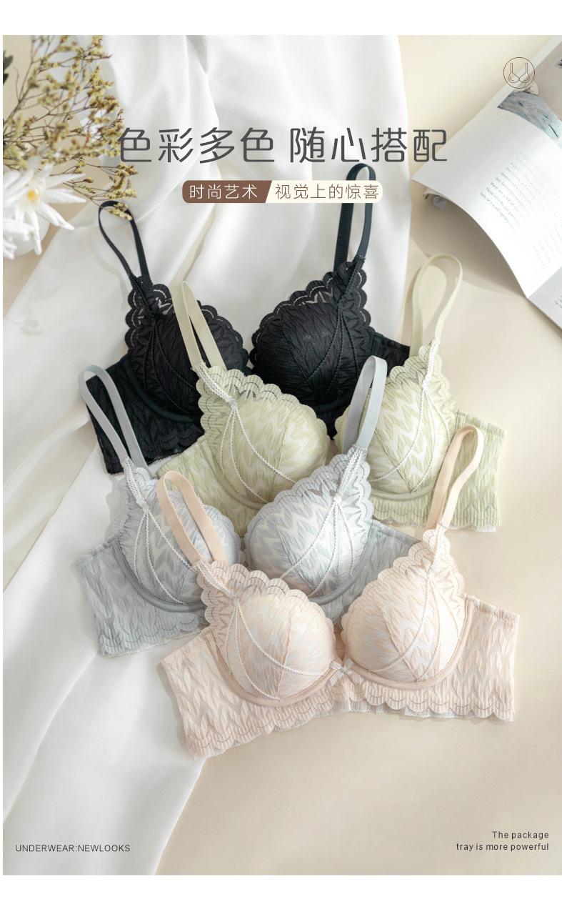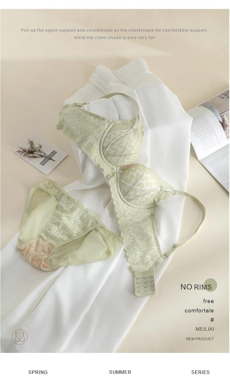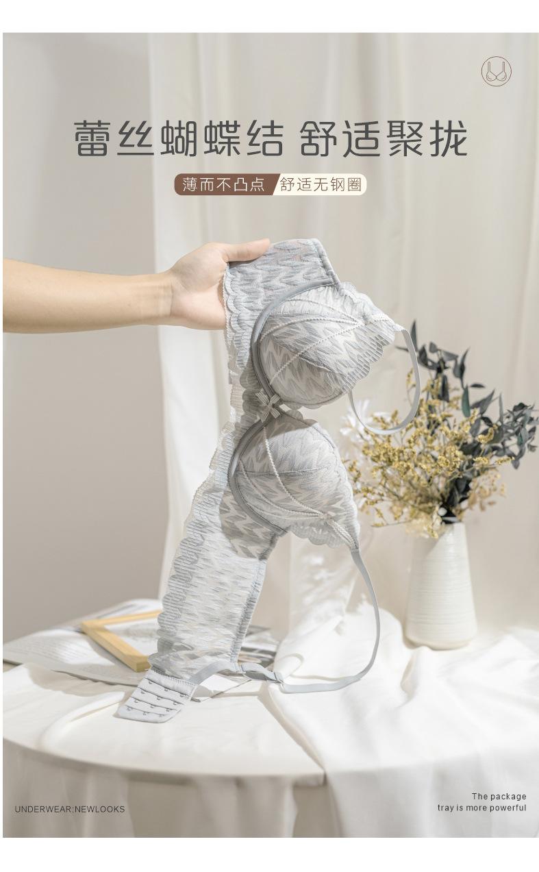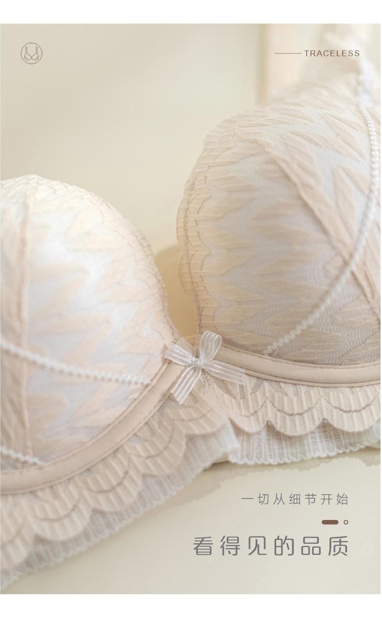 Ropa Interior de Encaje de Deseo Puro Delgada para Mujer Verano Inalámbrica Pecho Pequeño Sexy Push-Up Ajustable Suave Sujetador Set Estilo Caliente