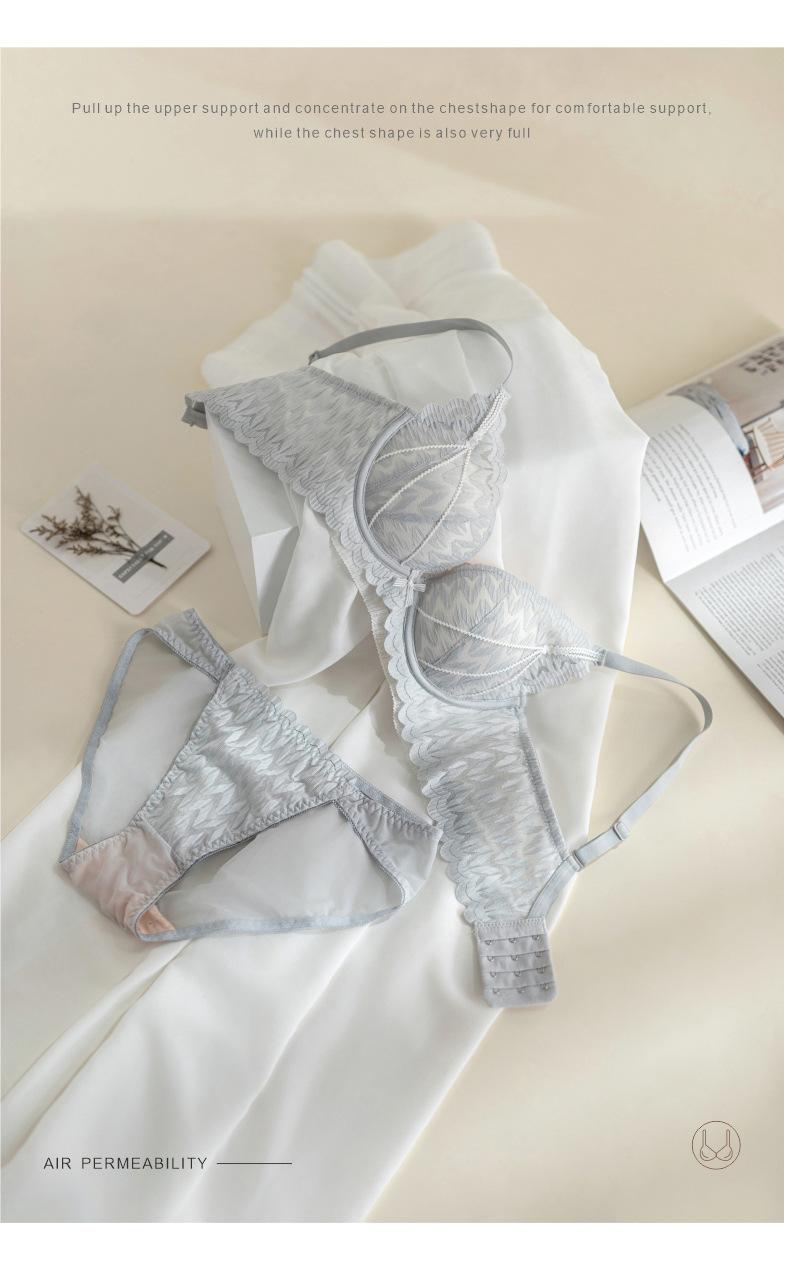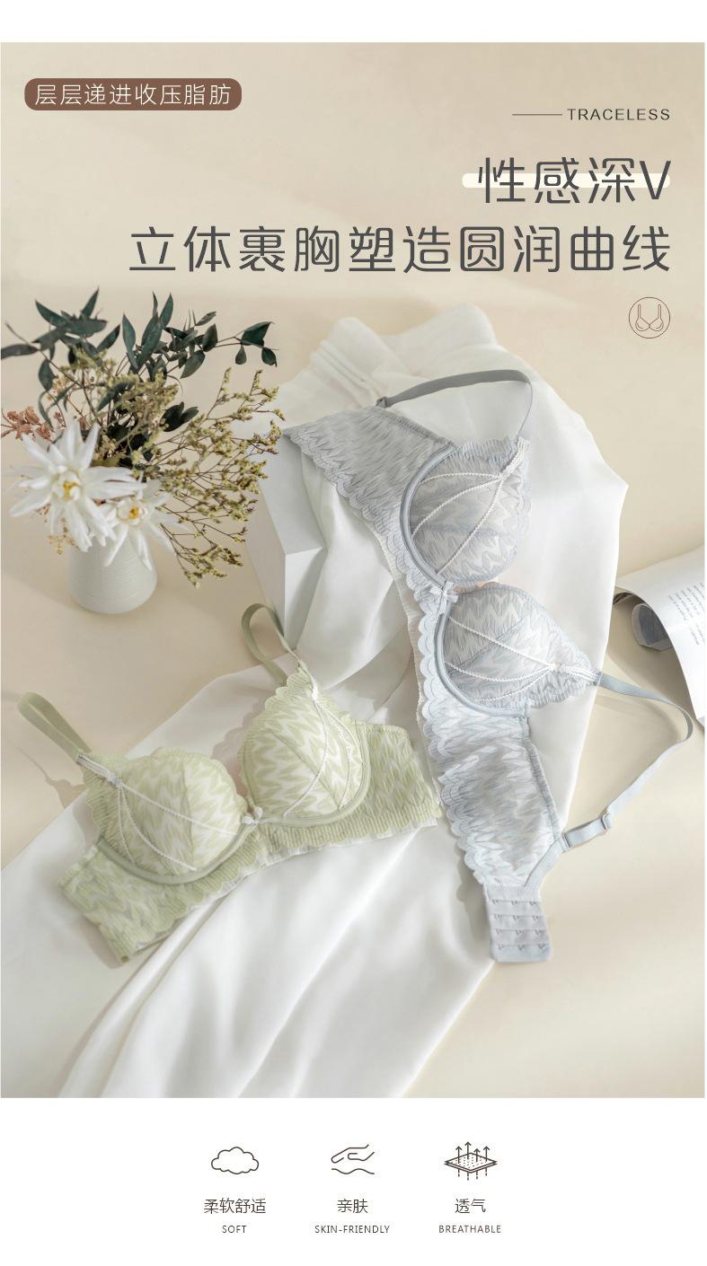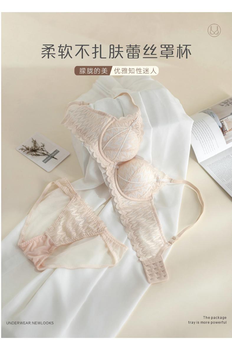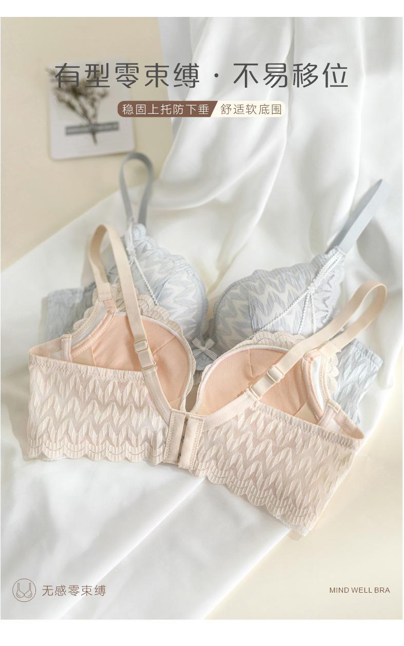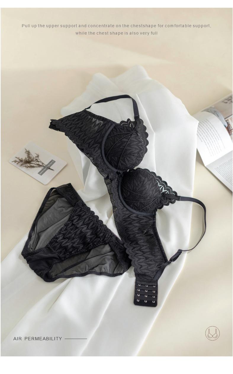 Ropa Interior de Encaje de Deseo Puro Delgada para Mujer Verano Inalámbrica Pecho Pequeño Sexy Push-Up Ajustable Suave Sujetador Set Estilo Caliente