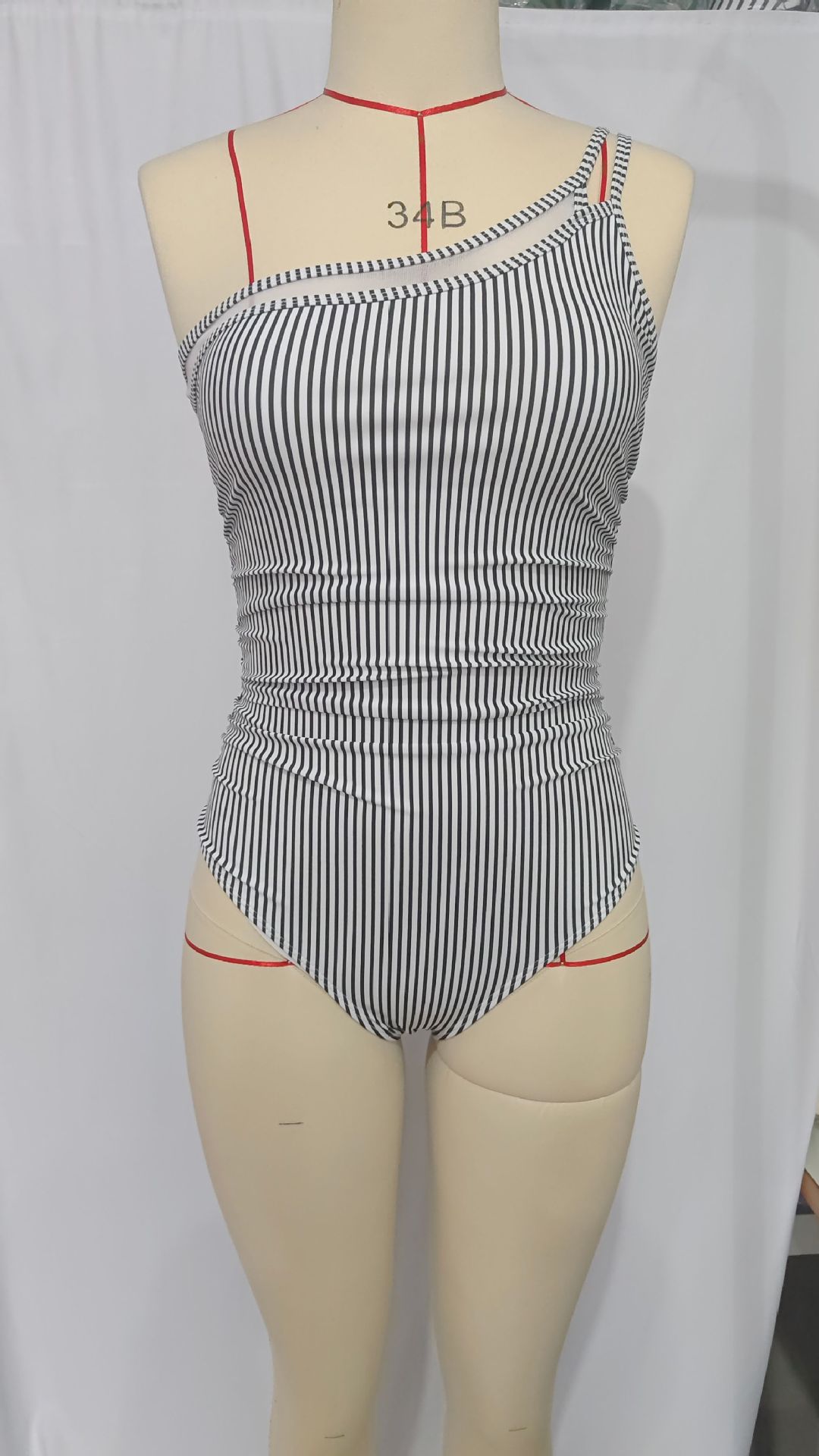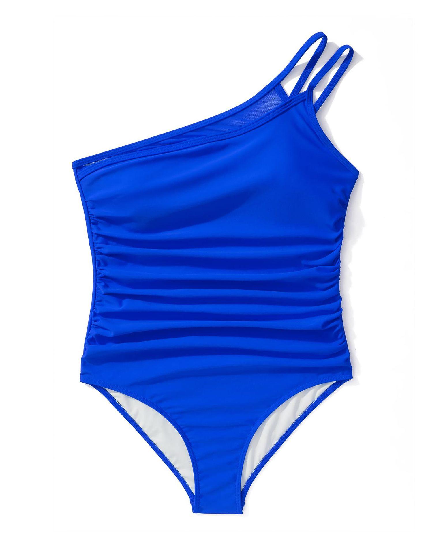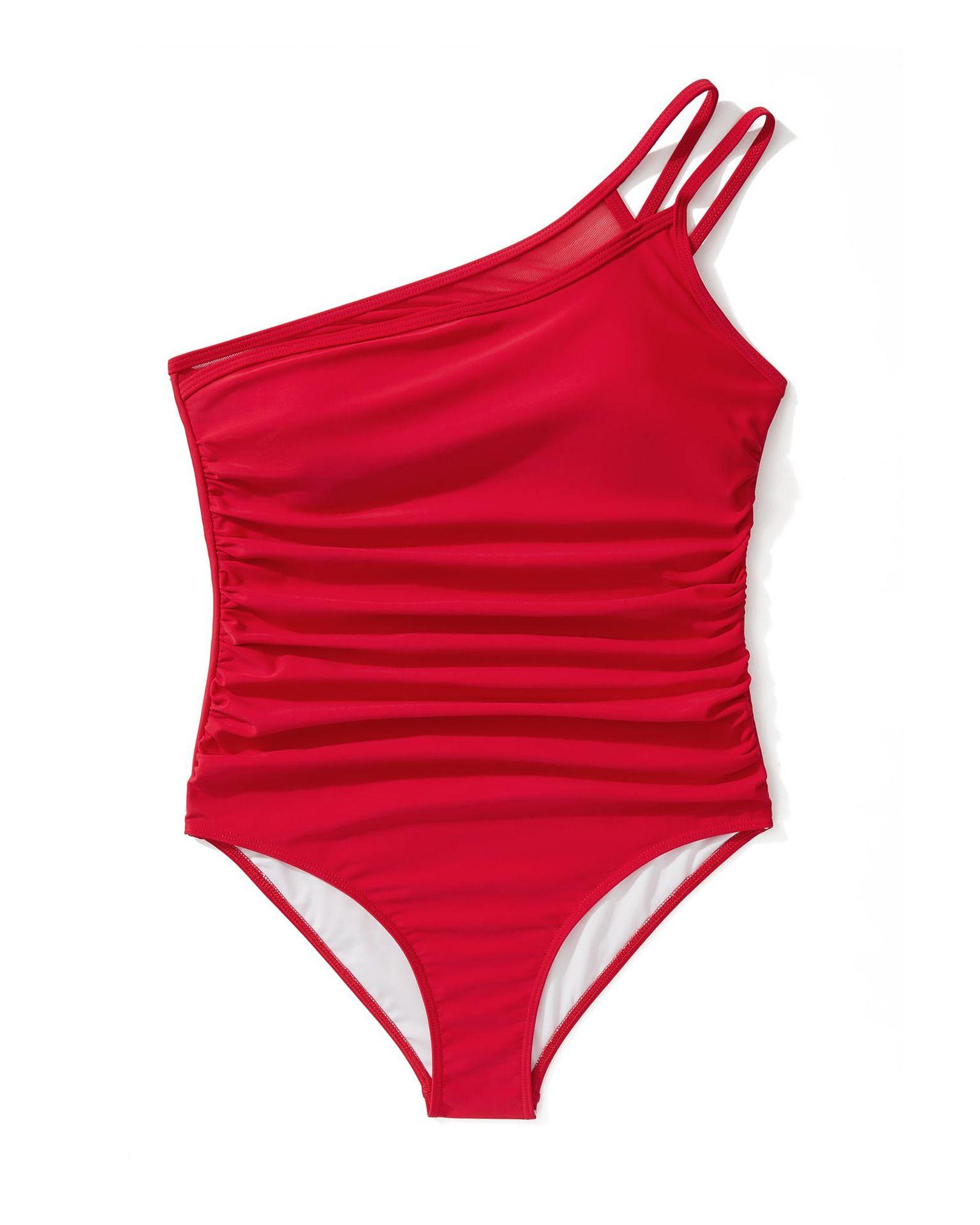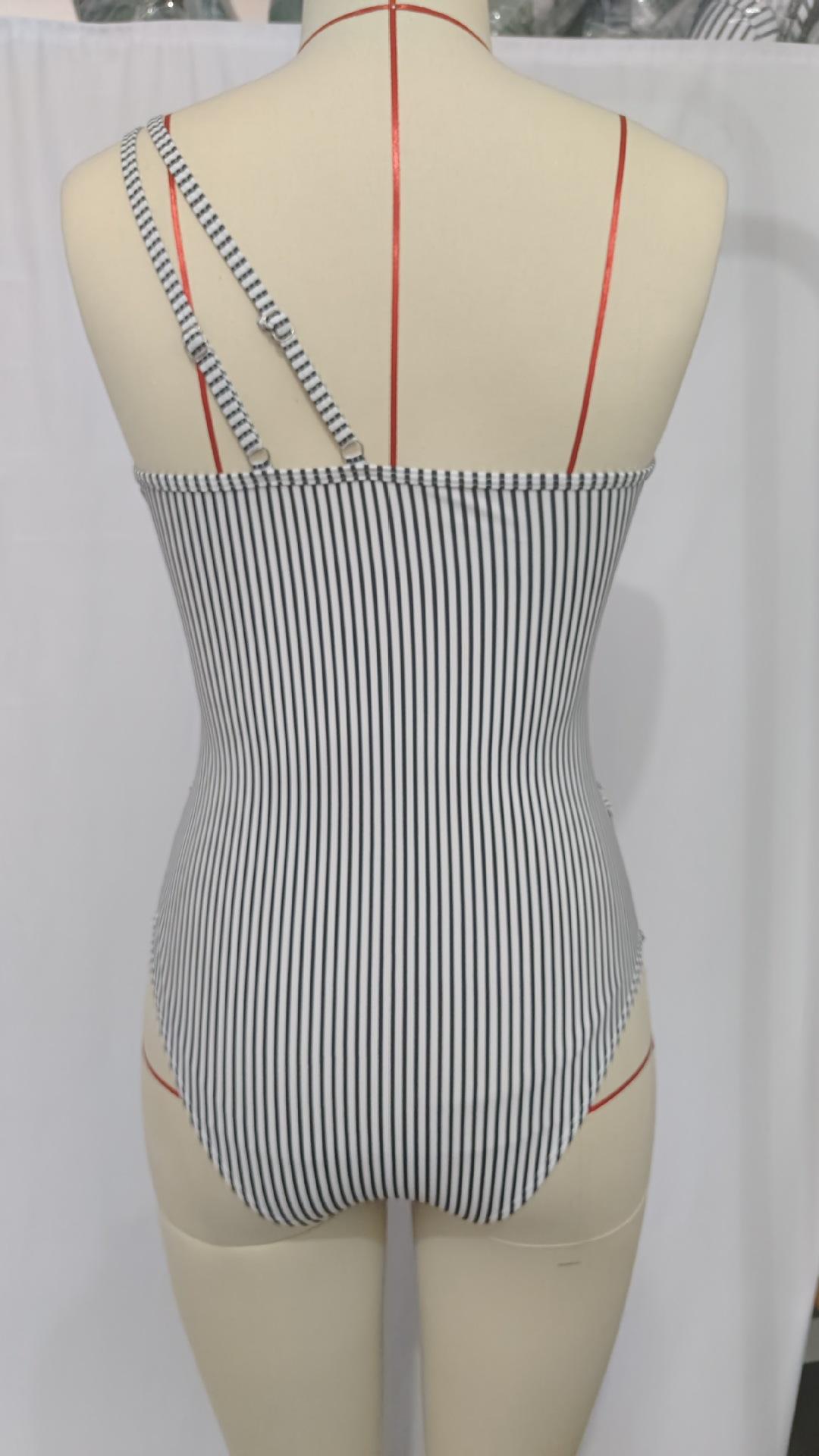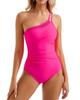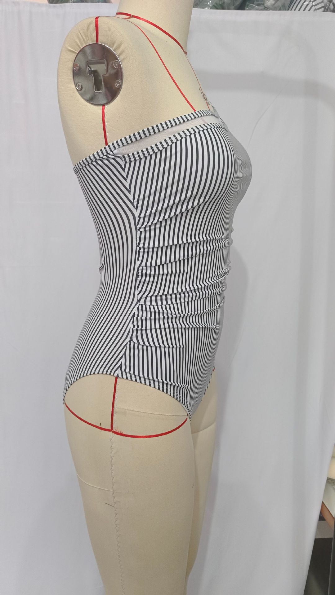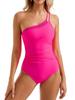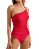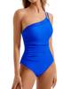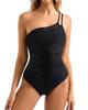 Traje de Baño Bikini Entero Sexy Plisado Monohombro Ajustado sin Espalda Nuevo Transfronterizo Europeo y Americano 2025 Traje de Baño de Mujer