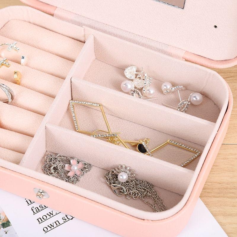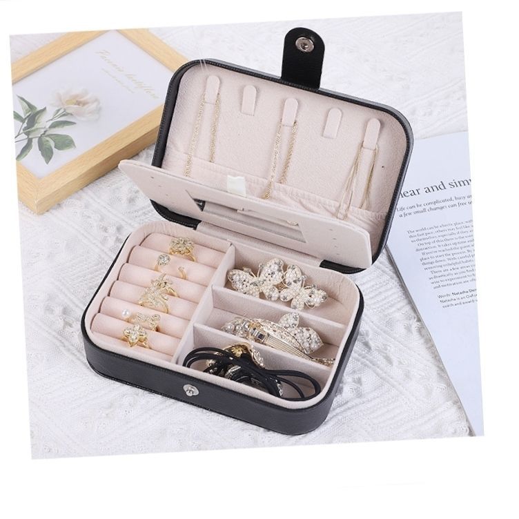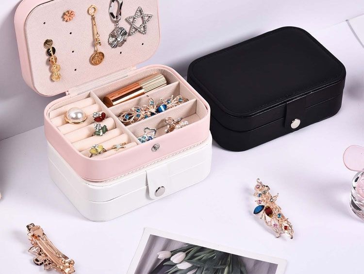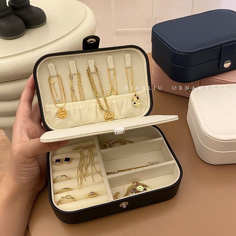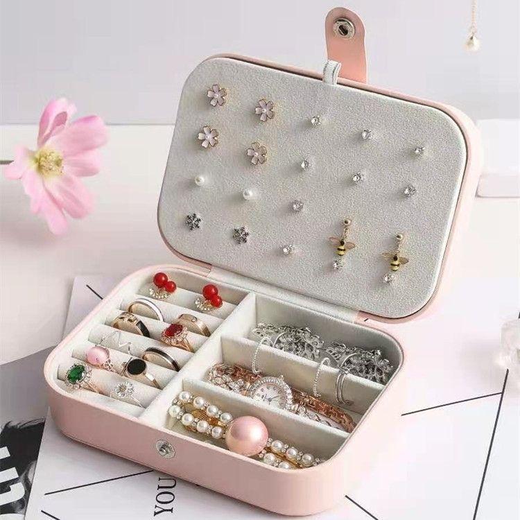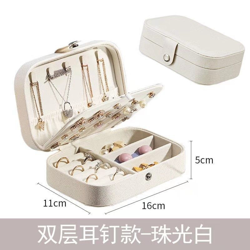 Daifa Caja de Joyería Portátil Transfronteriza Mediana Almacenamiento Doble Capa Embalaje de Joyería Aretes Anillo Aretes Caja de Joyería de Franela