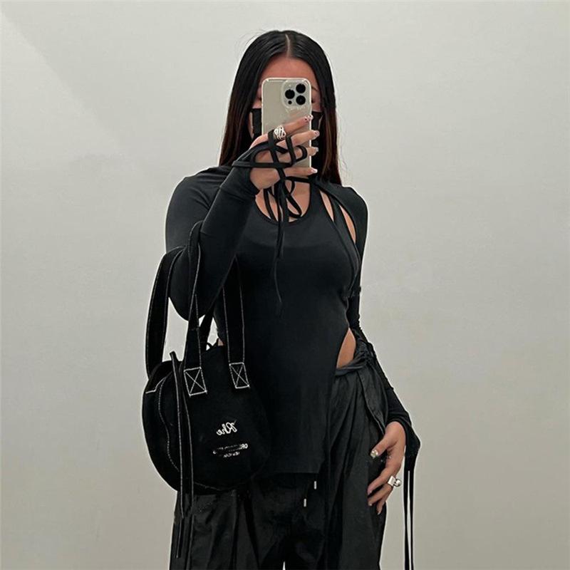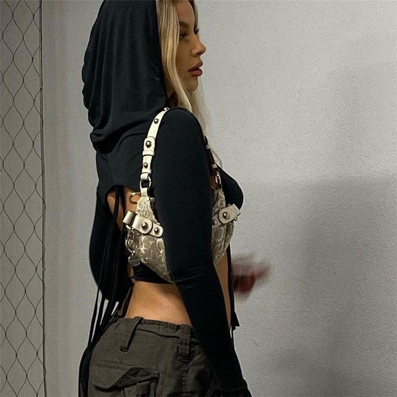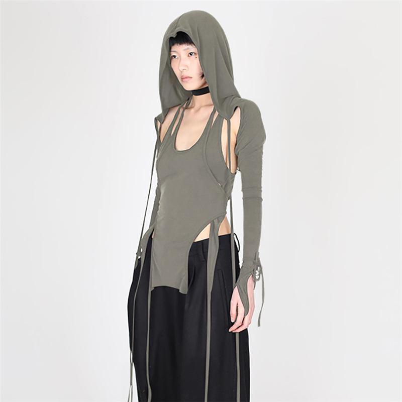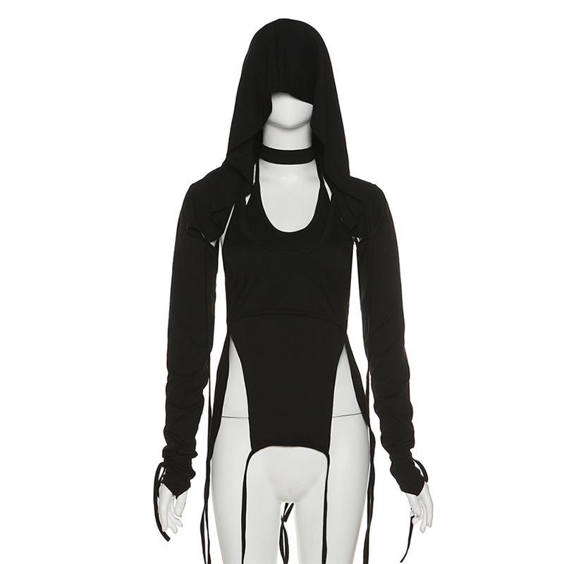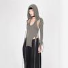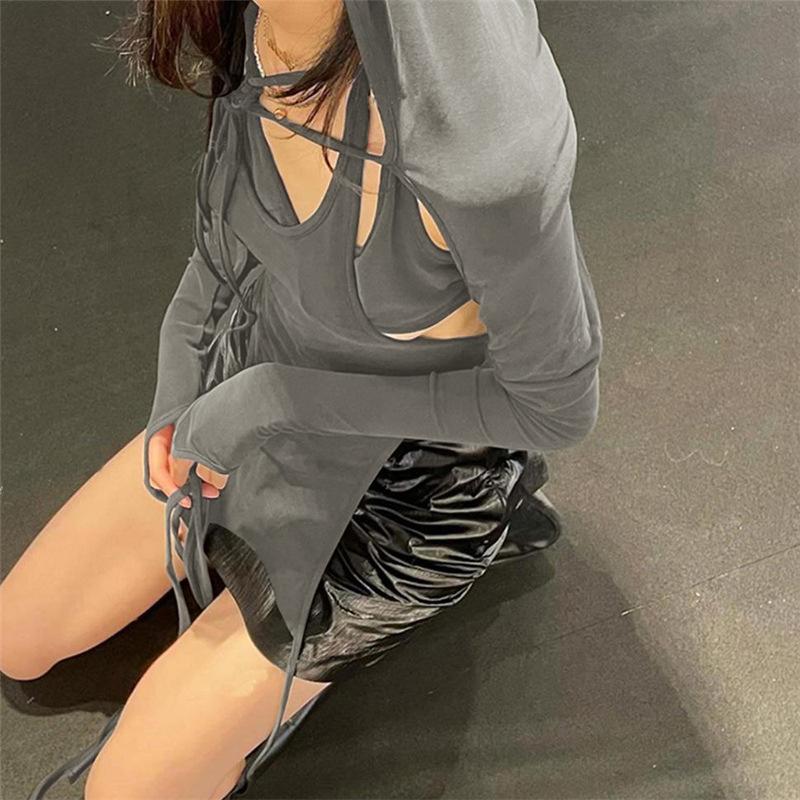 2025 Primavera y Otoño Transfronterizo Moda Europea y Americana para Mujer Nuevo Top Ajustado de Manga Larga con Capucha Estilo Harajuku con Lazo