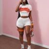 Verano Nuevo Transfronterizo Moda Deportiva Europea y Americana Slim Retro Chica Caliente Letra Estampada Top de Manga Corta Traje de Shorts