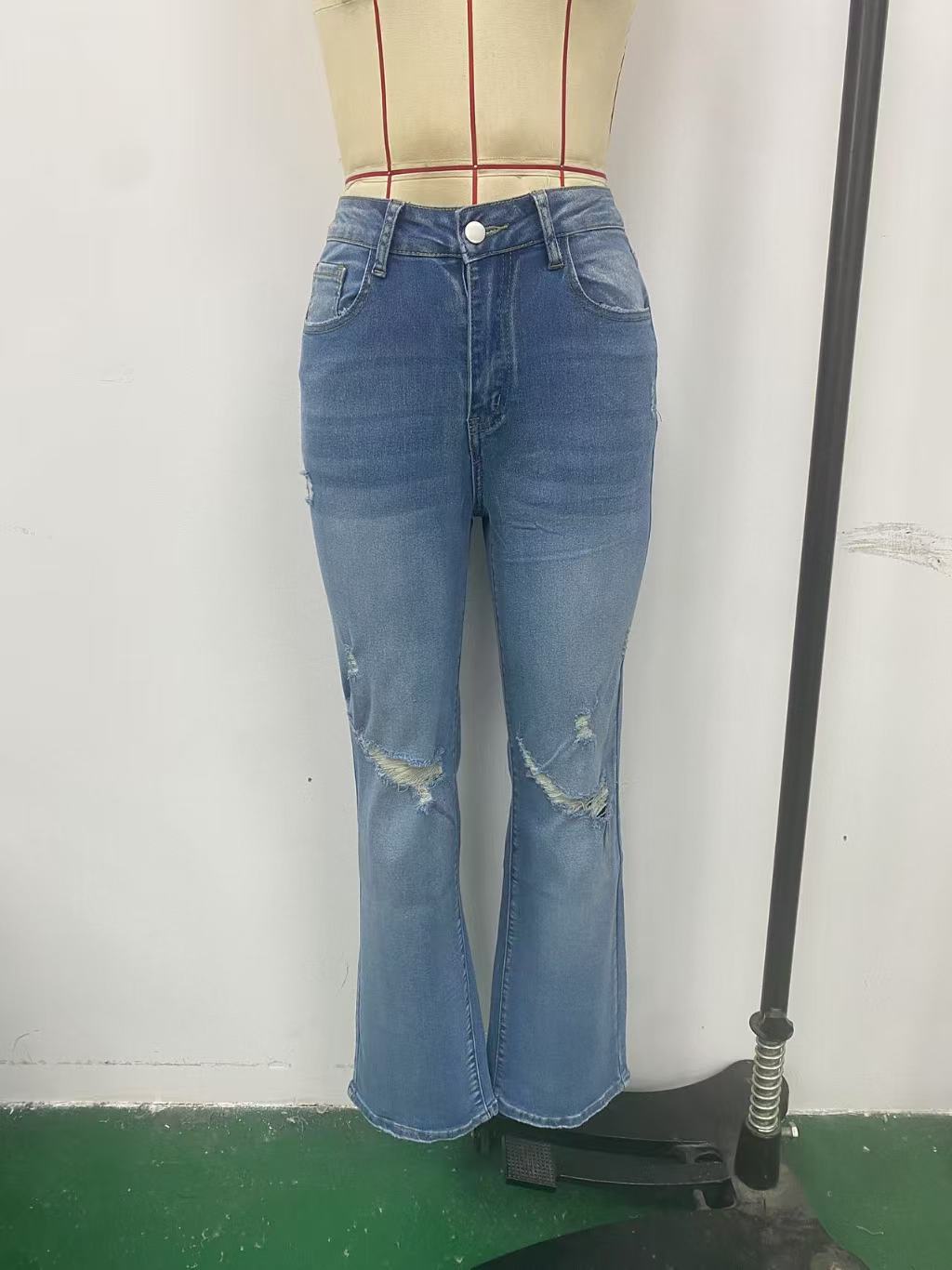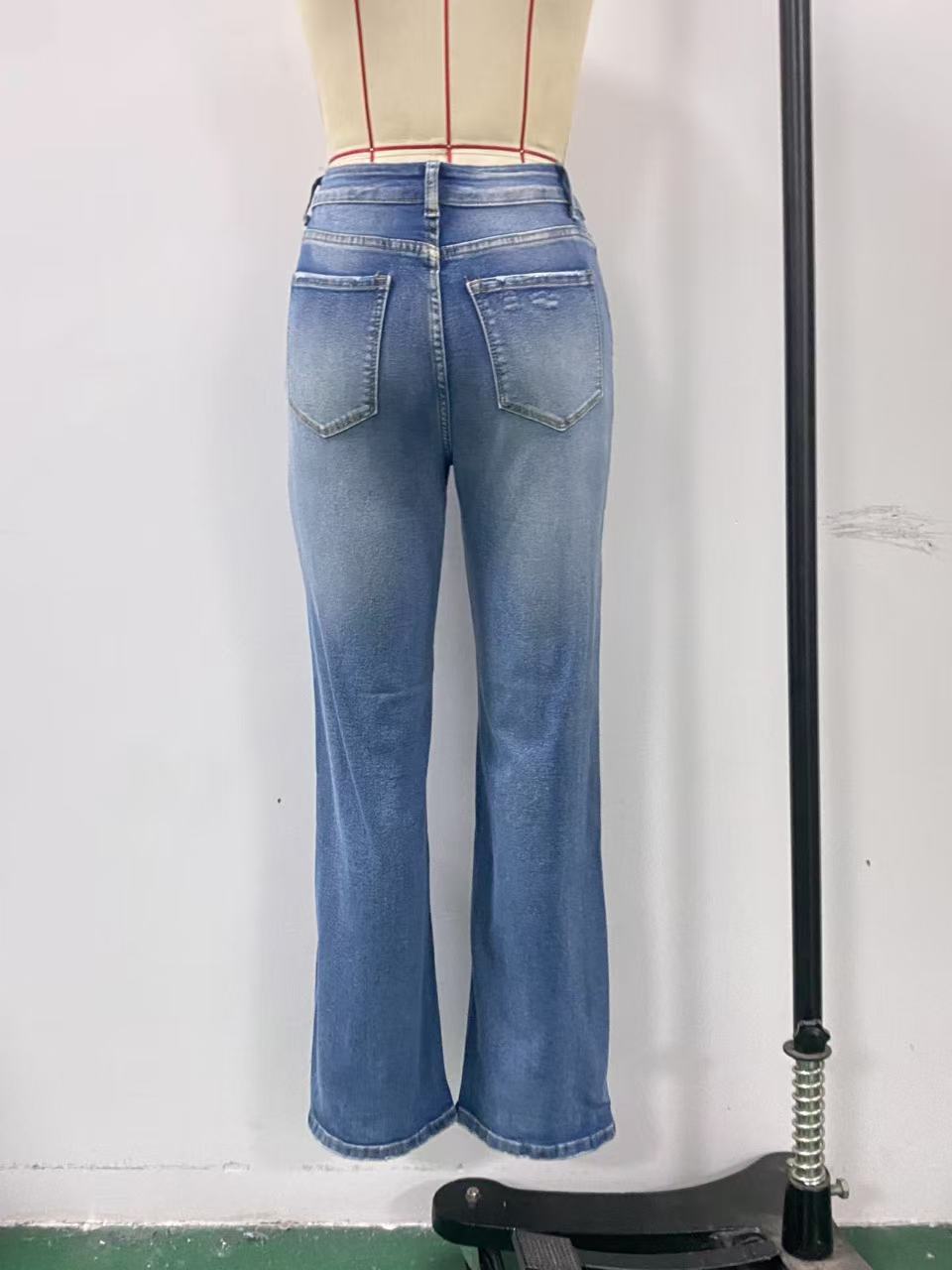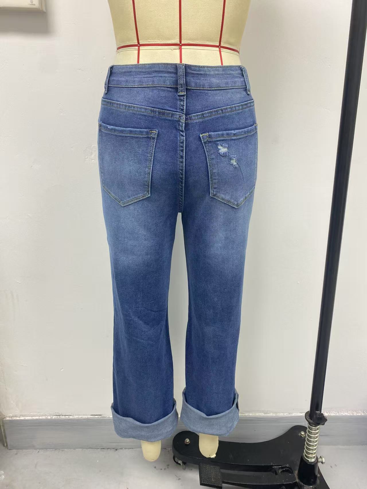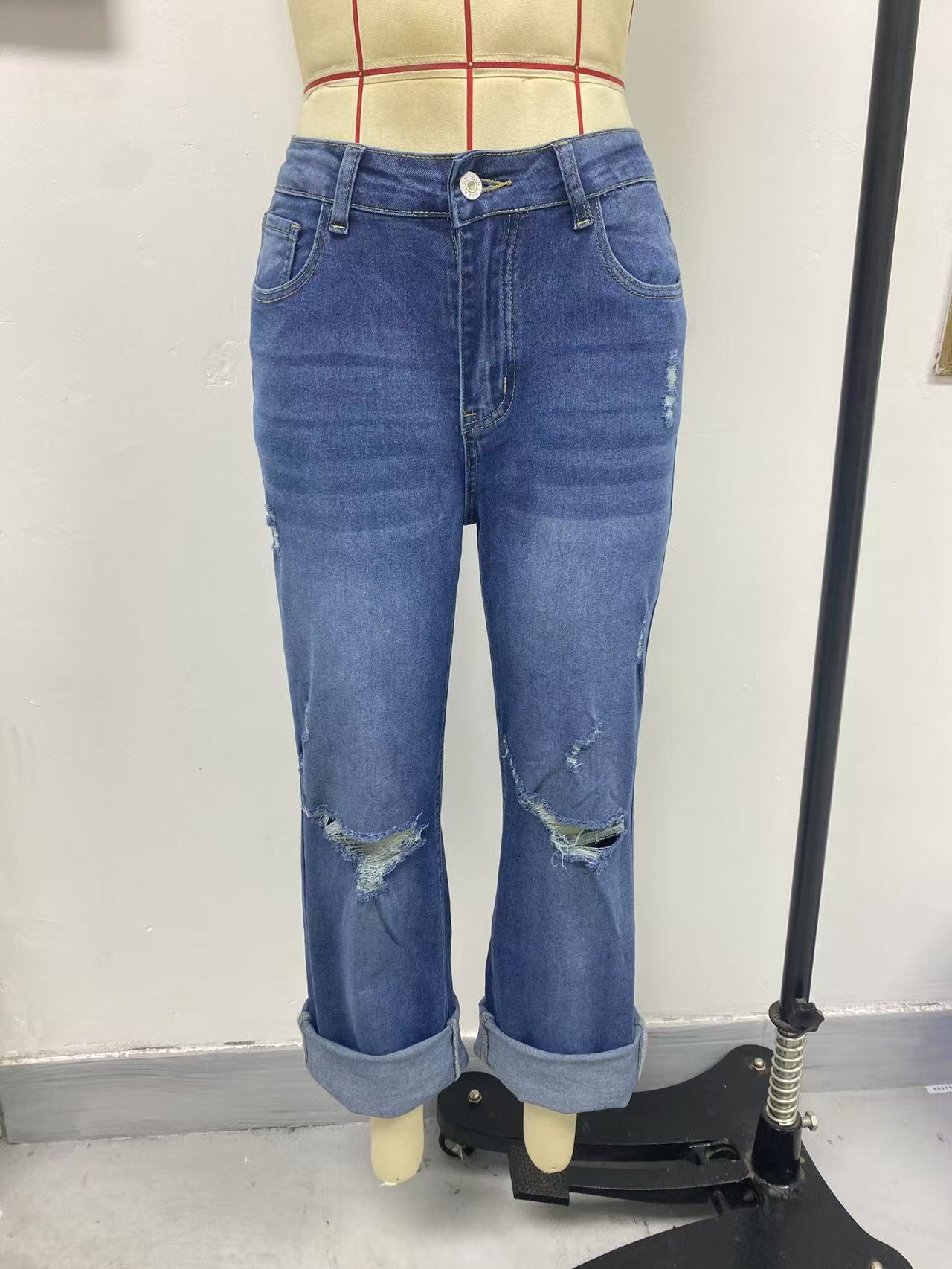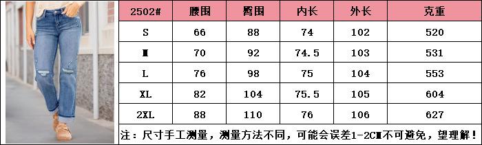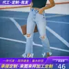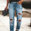 Amazon AliExpress Transfronterizo Jeans de Mujer Europeos y Americanos Jeans de Mujer de Cintura Media Cómodos Rotos Elásticos Rectos de Mezclilla