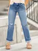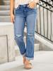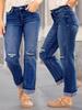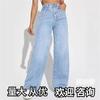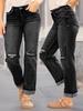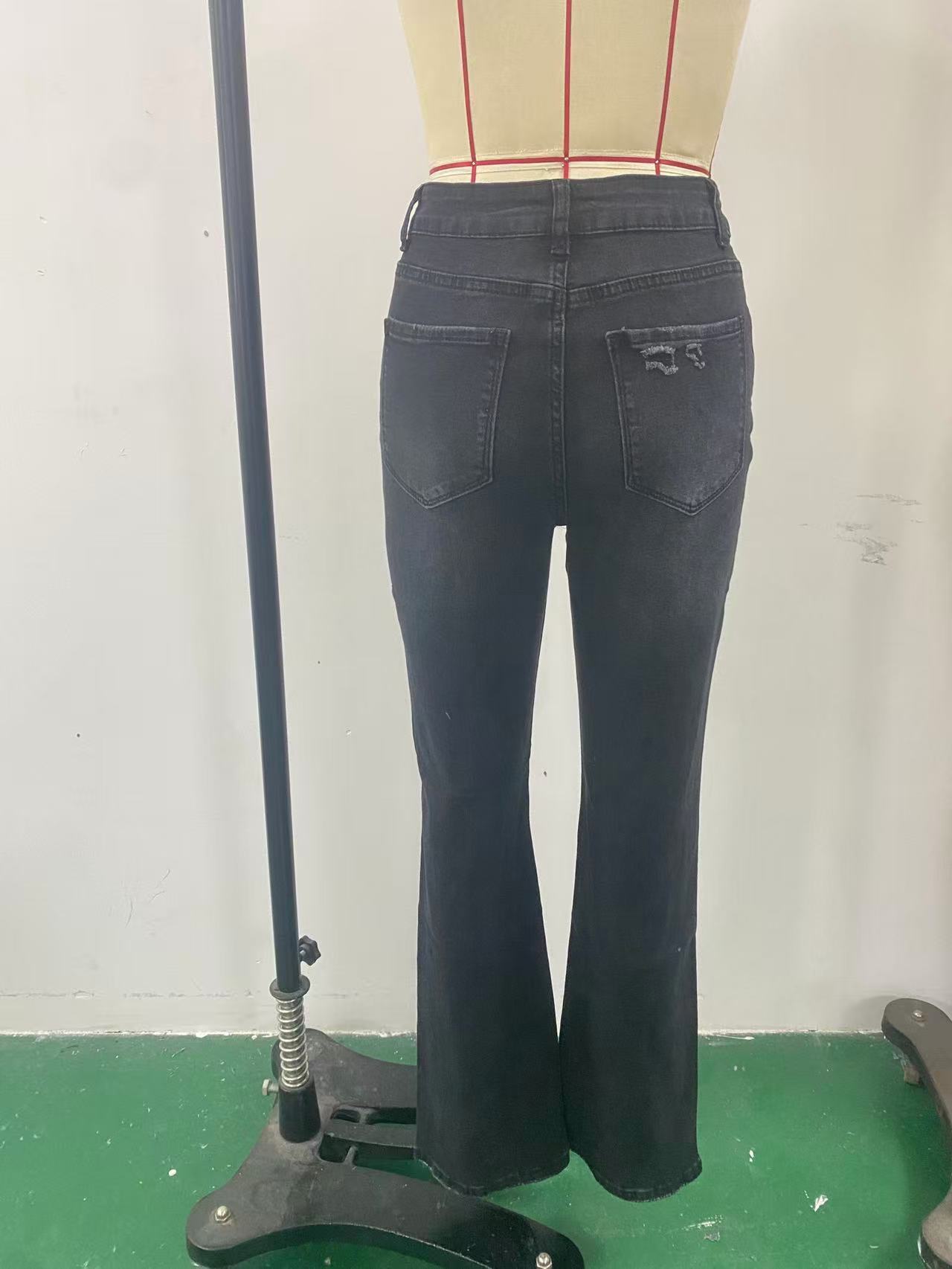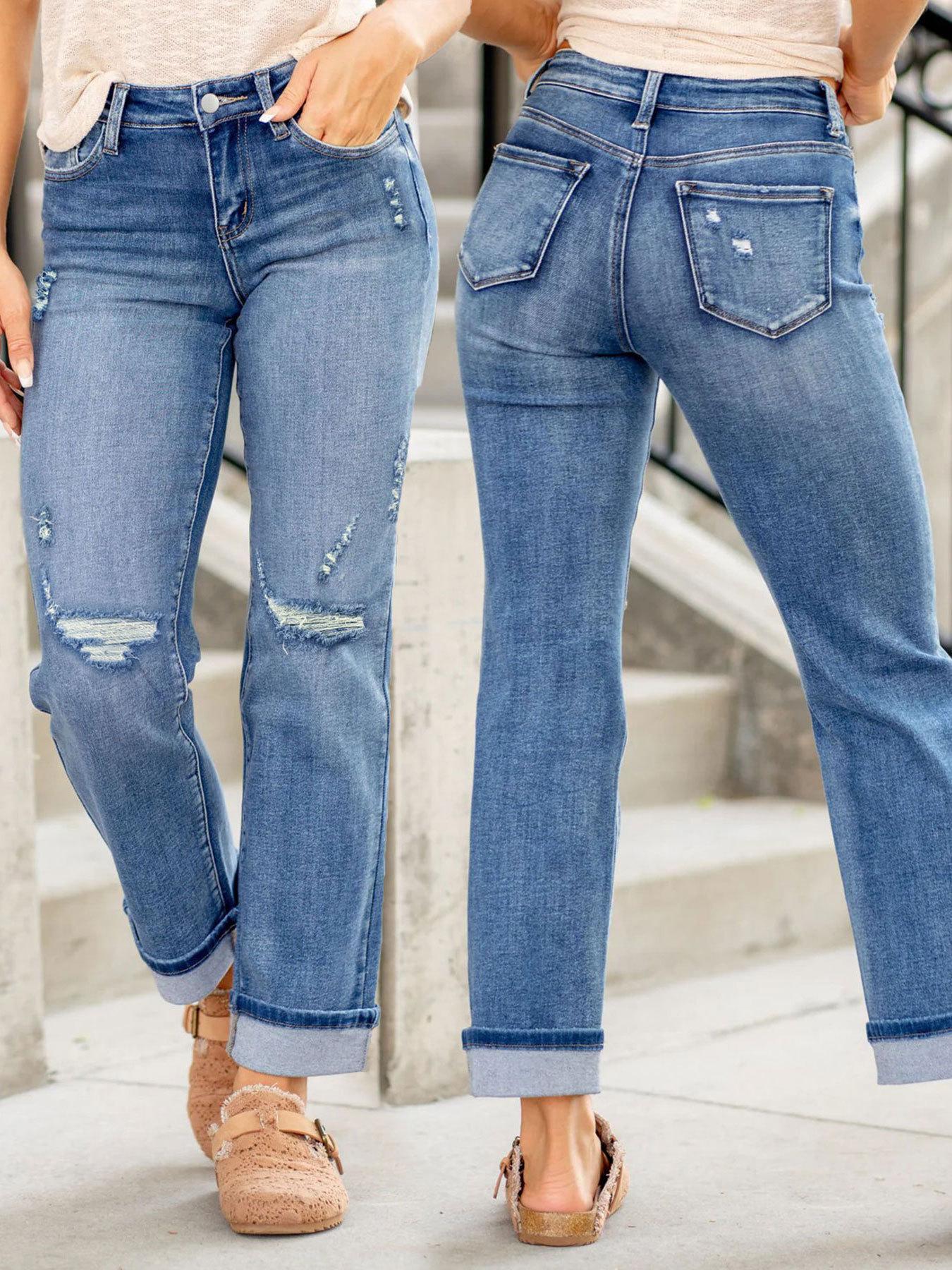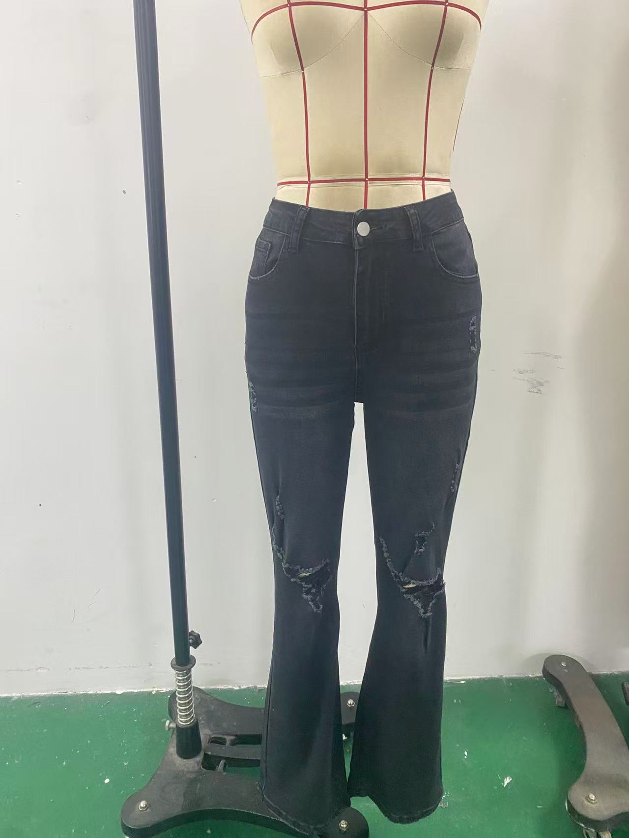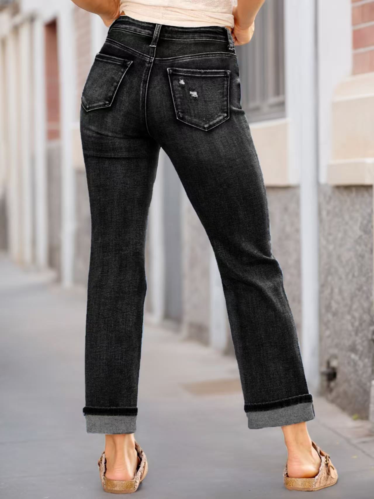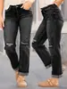 Amazon AliExpress Transfronterizo Jeans de Mujer Europeos y Americanos Jeans de Mujer de Cintura Media Cómodos Rotos Elásticos Rectos de Mezclilla