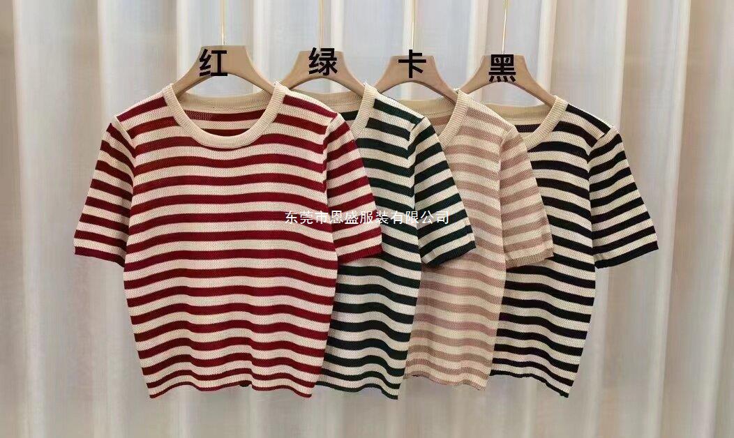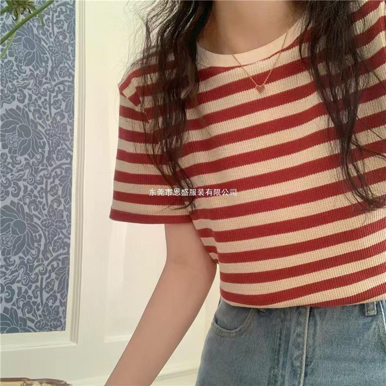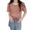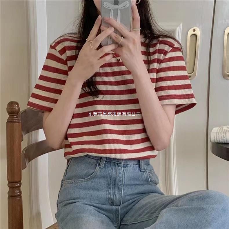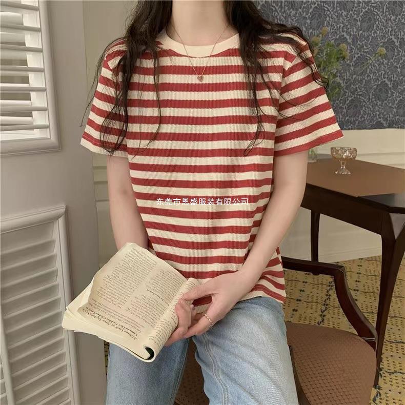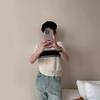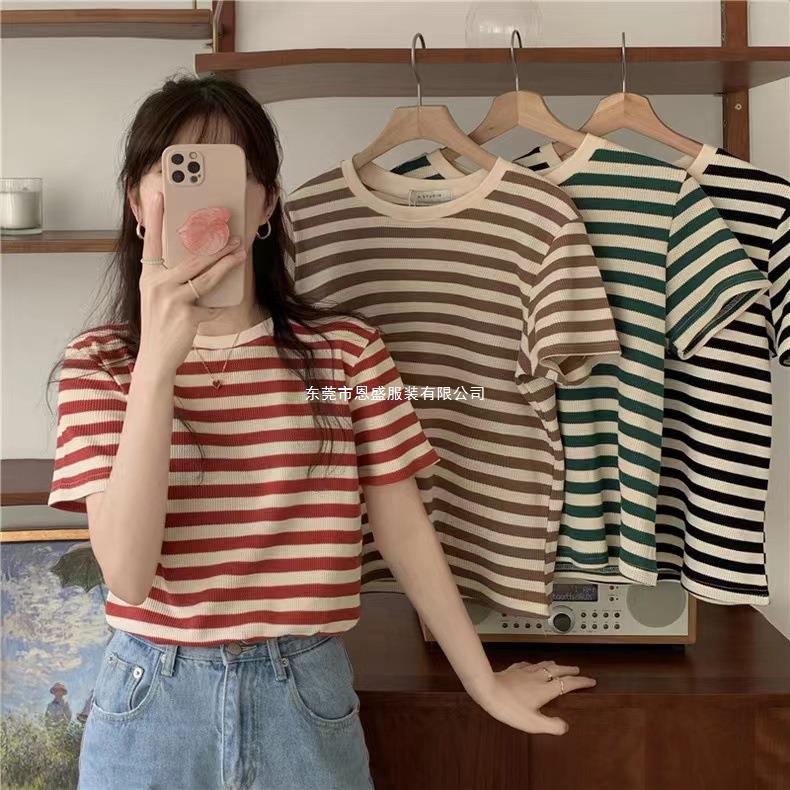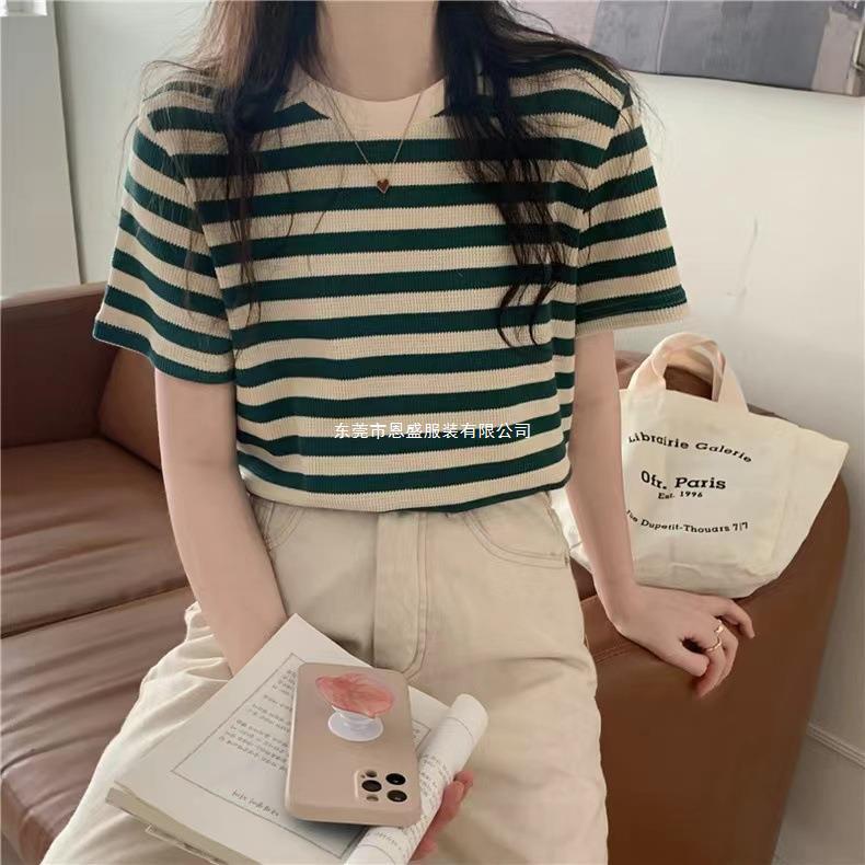 2024 Verano Nuevo para Mujer Retro Cuello Redondo Diseño Rayado Nicho Holgado Delgado Manga Corta Suéter Top