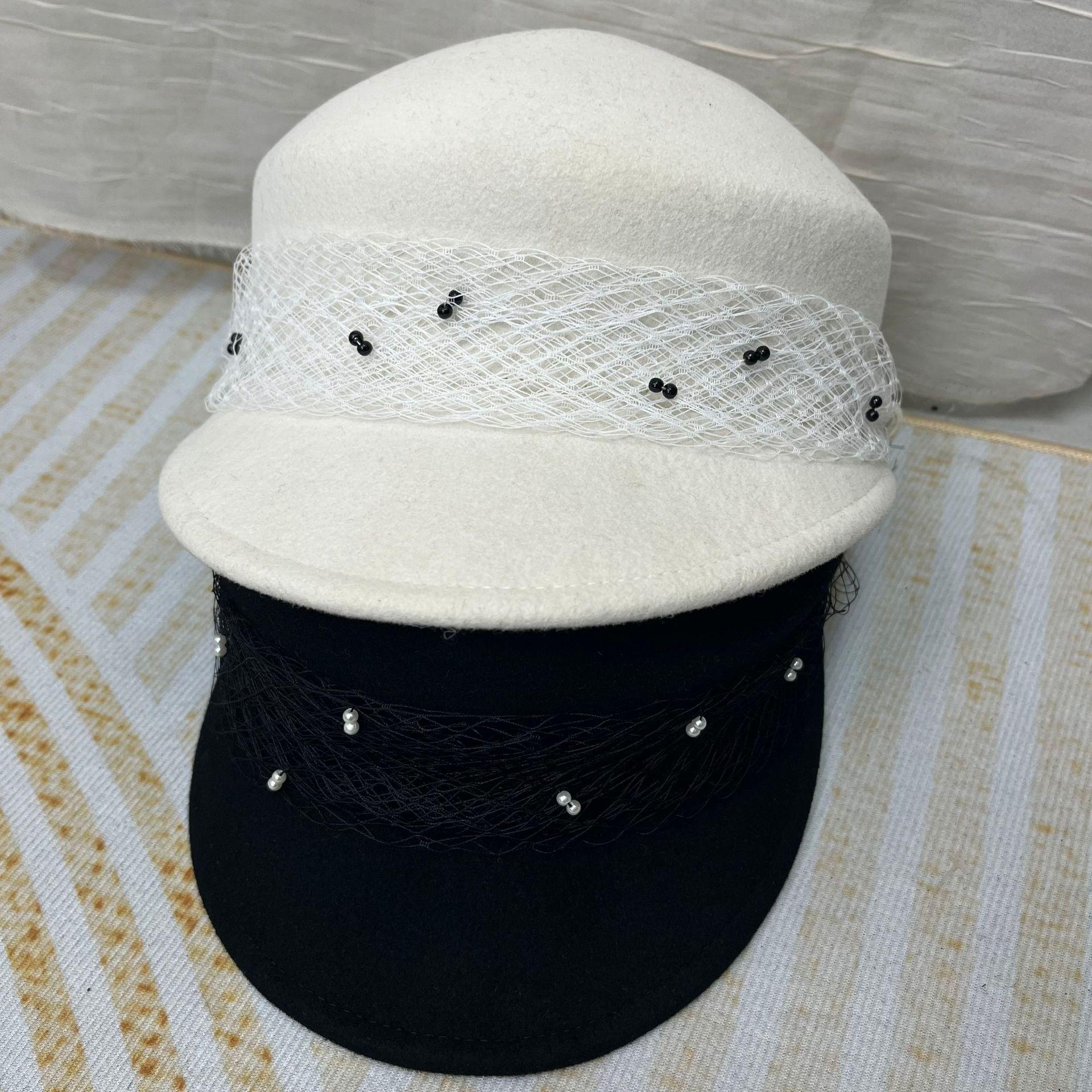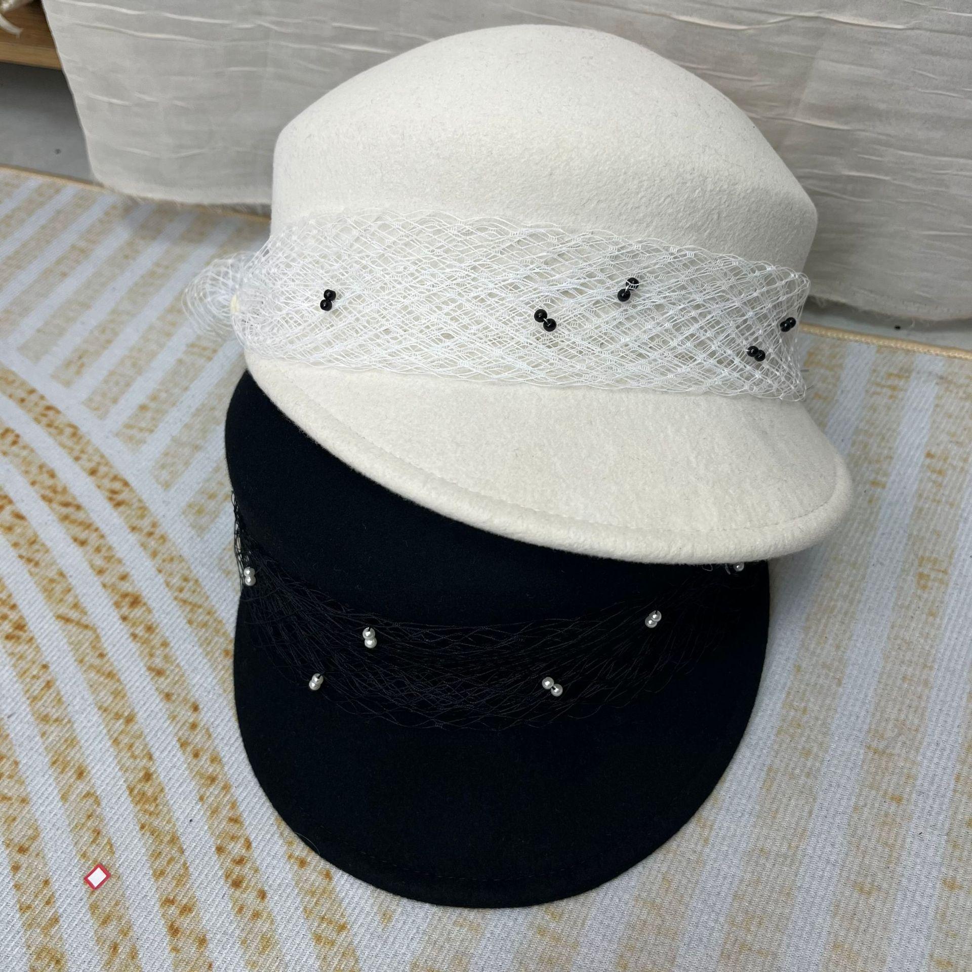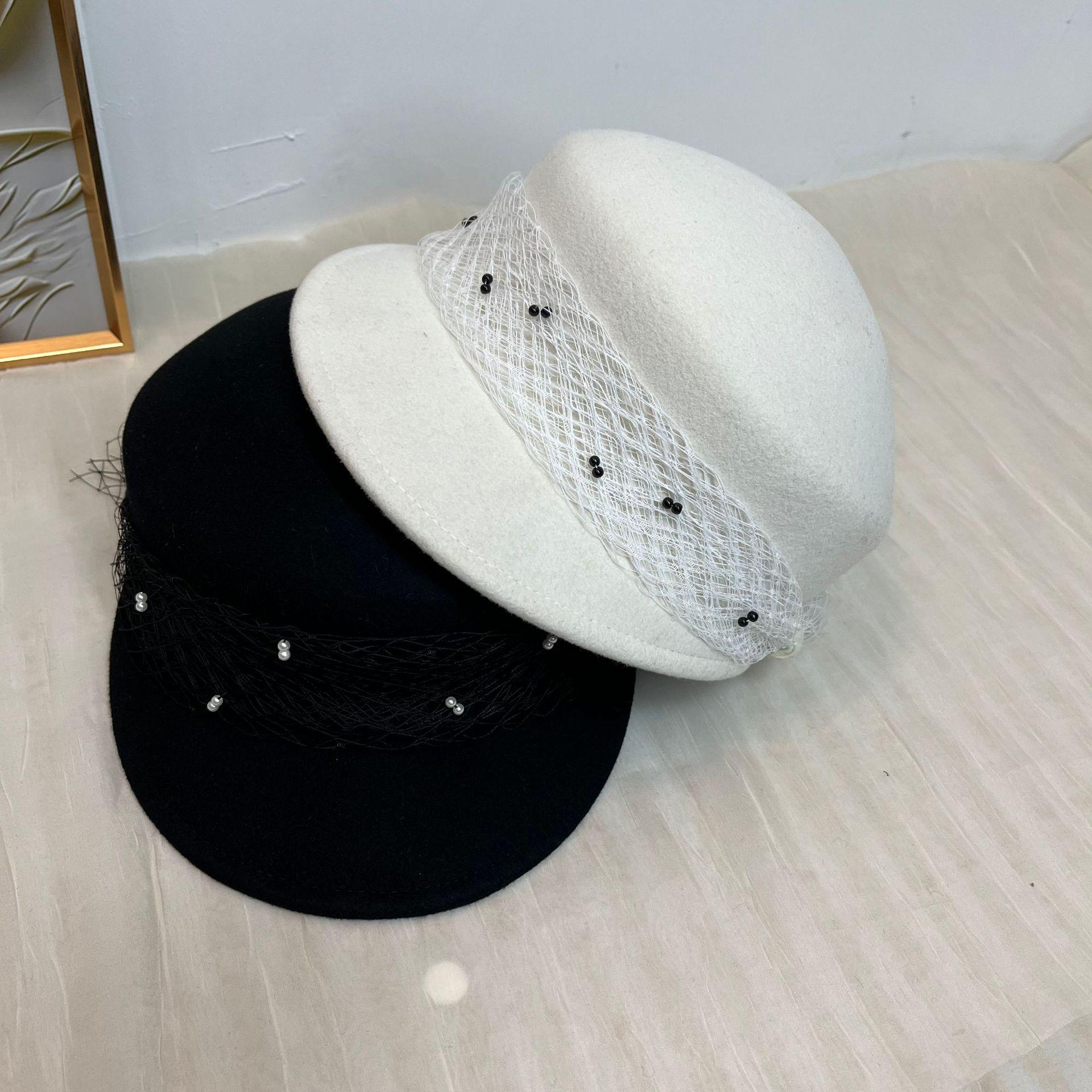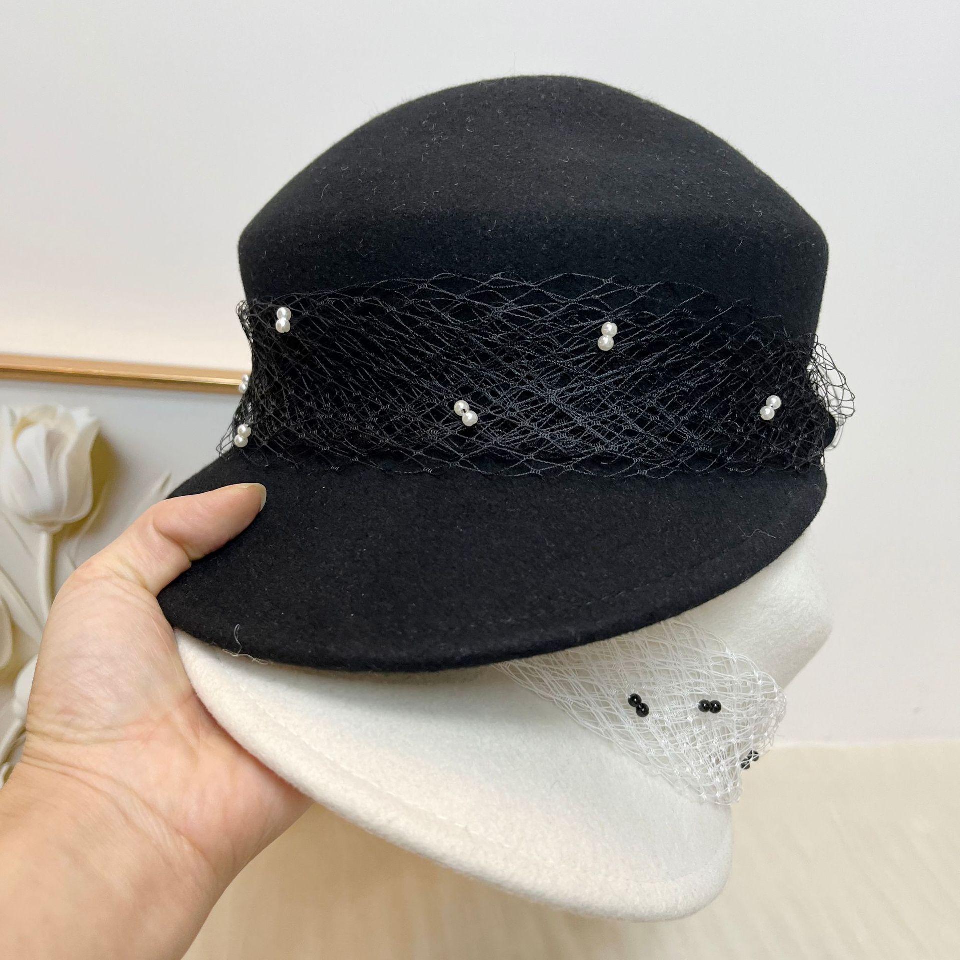 Gorra Ecuestre de Malla Francesa con Perlas Nueva Gorra de Lana de Otoño e Invierno Gorra de Béisbol Casual Japonesa Gorra Casual Combinable