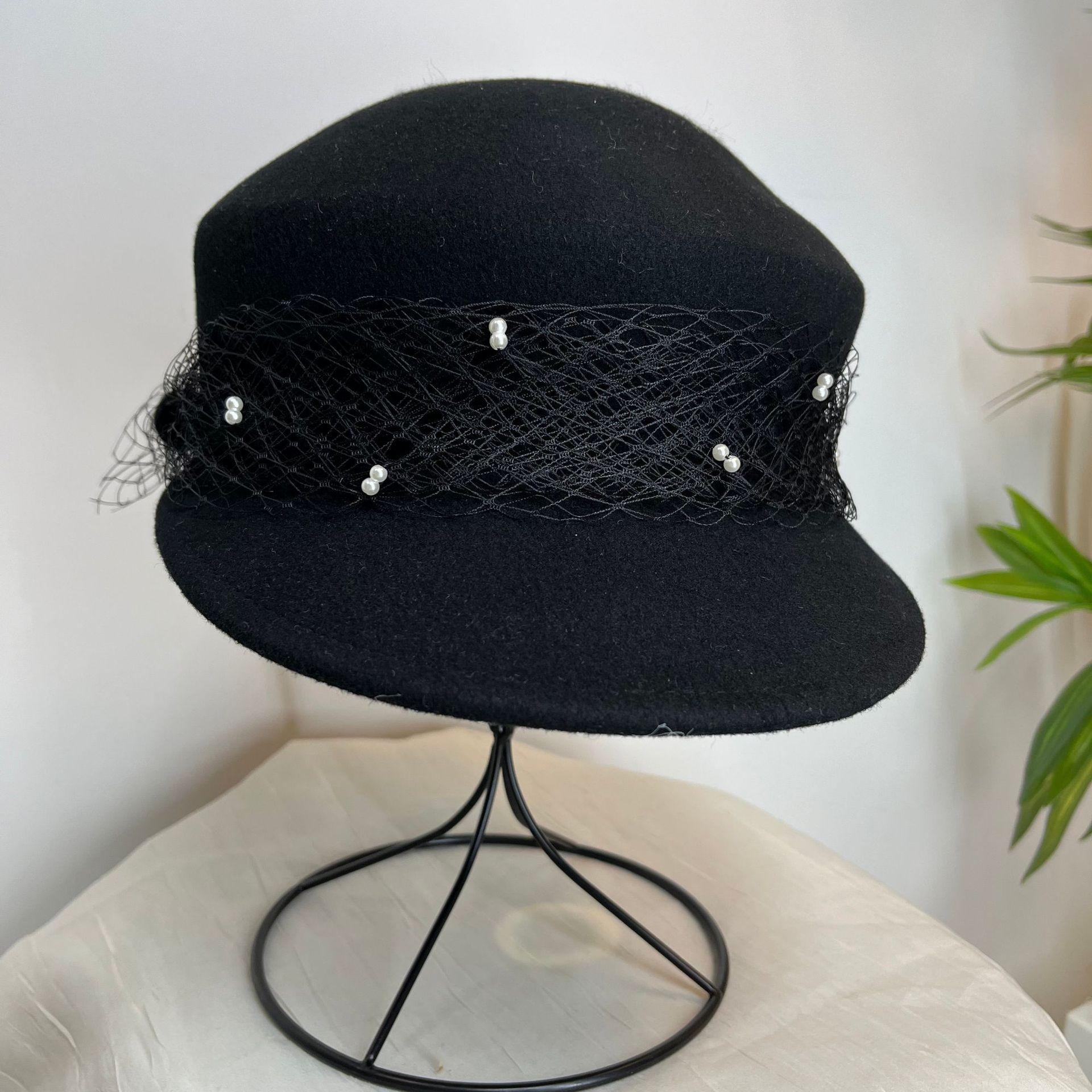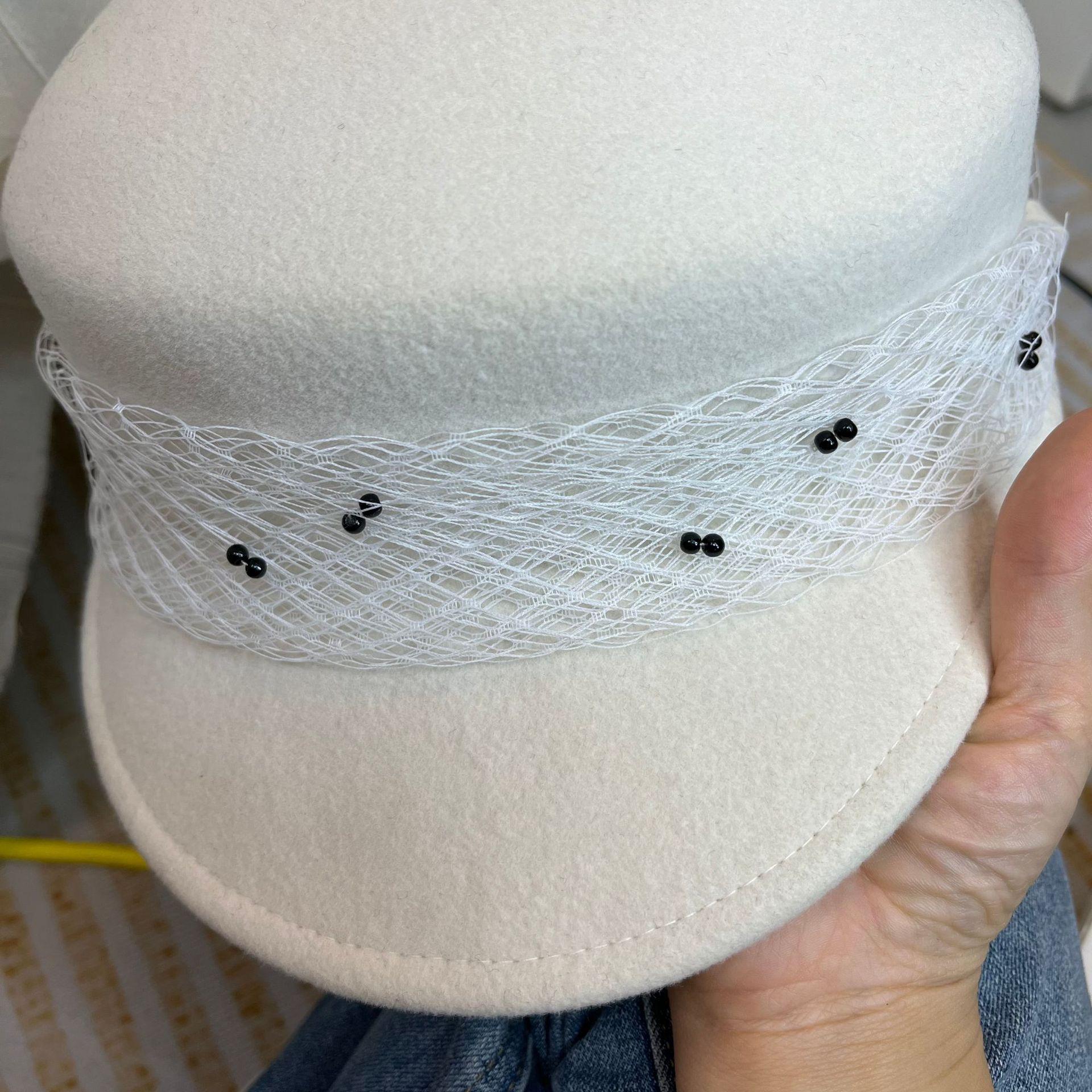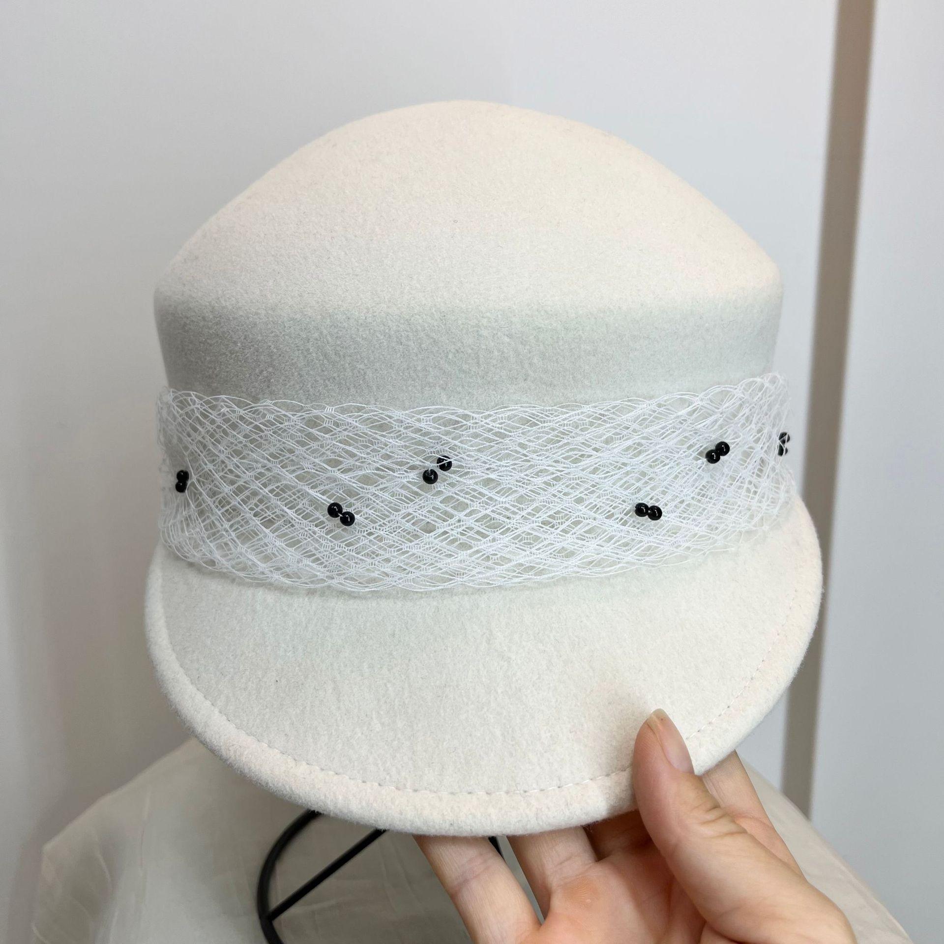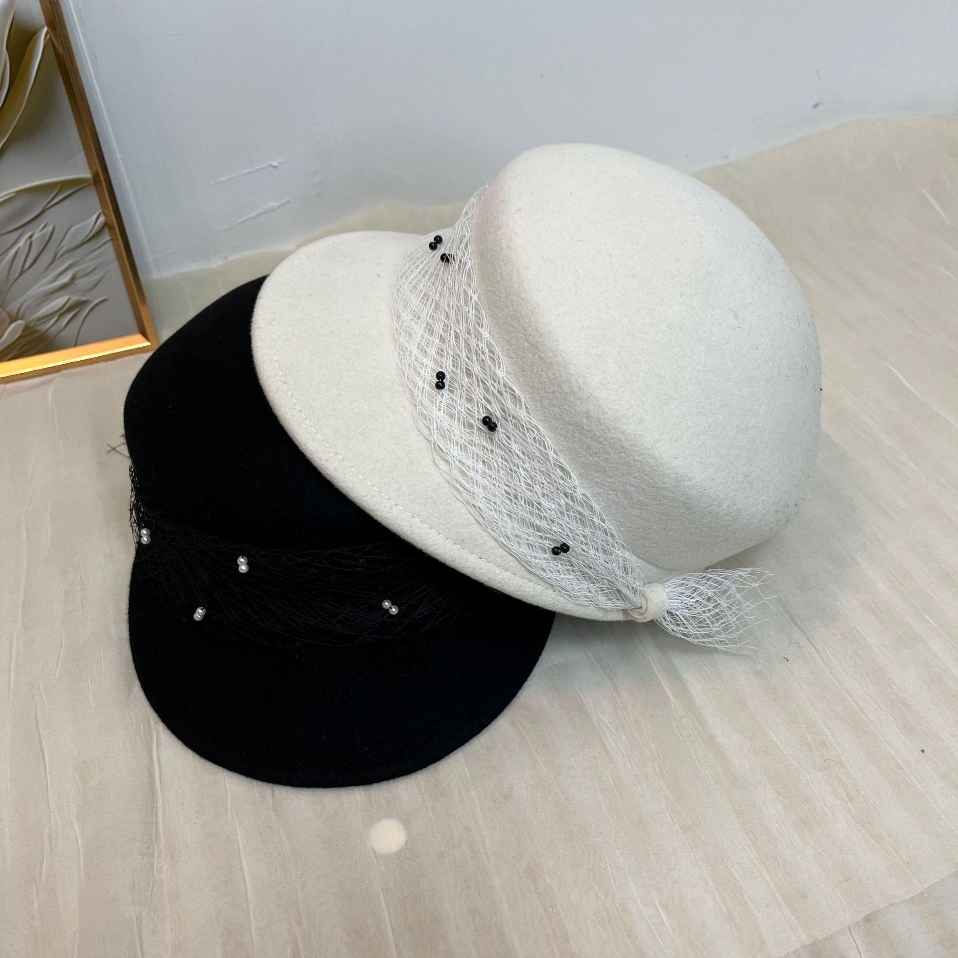 Gorra Ecuestre de Malla Francesa con Perlas Nueva Gorra de Lana de Otoño e Invierno Gorra de Béisbol Casual Japonesa Gorra Casual Combinable
