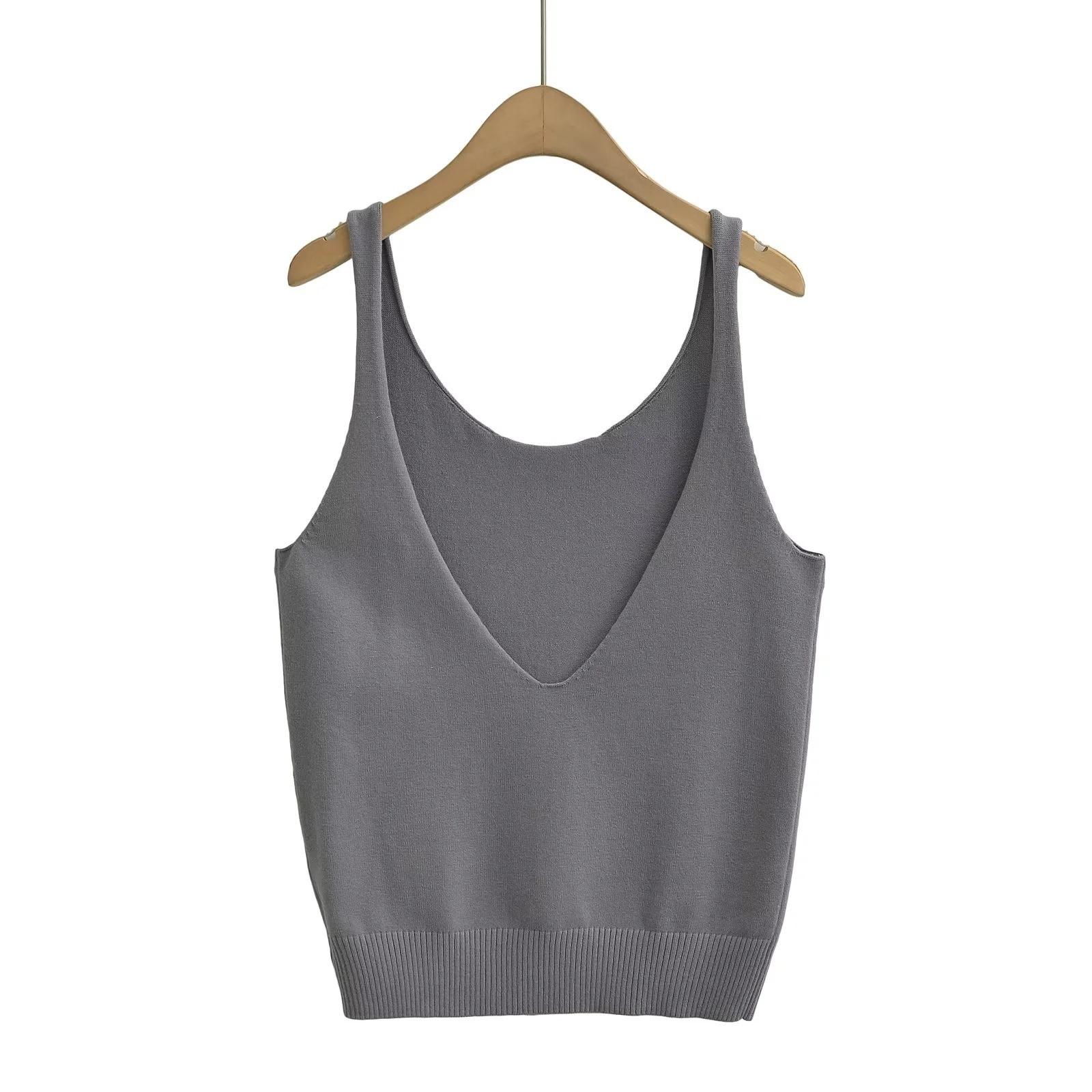 Sentido del Diseño Nicho Spice Girls Top Corto sin Mangas de Color Sólido Ajustado para Mujer Camisola Sexy Elástica sin Espalda para Exterior