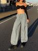 Pantalones Cargo Americanos Retro de Cintura Alta con Cordón y Pierna Ancha para Mujer Verano 2024 Nuevo Suelto Adelgazante Secado Rápido Casual