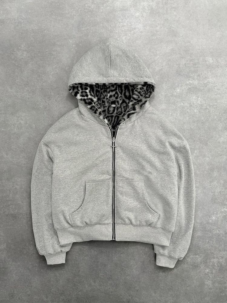 Sudadera con capucha nueva europea y americana de otoño e invierno, sudadera con capucha con cremallera con estampado de leopardo retro, top holgado personalizado Ins