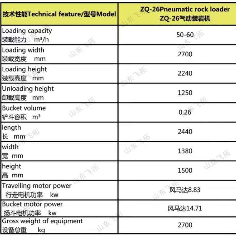 Minero Zq-26 Cargador Neumático de Roca Tipo Cucharón Cargador Subterráneo Alimentado por Aire Retroexcavadora Carga y Descarga Escoria
