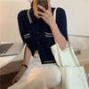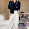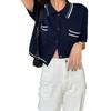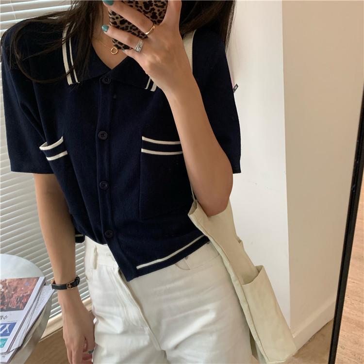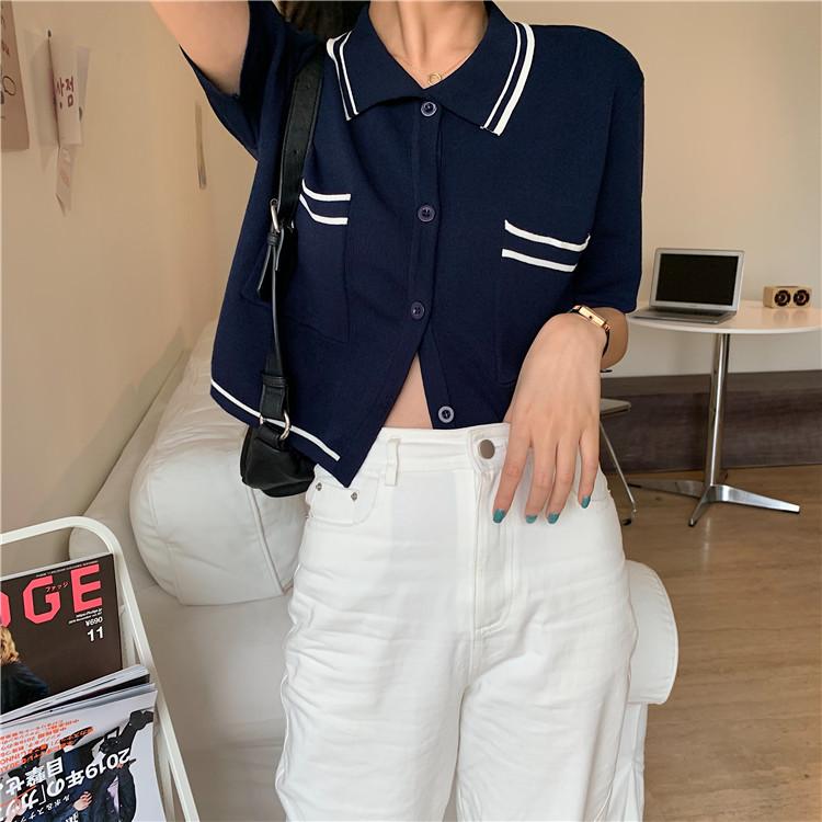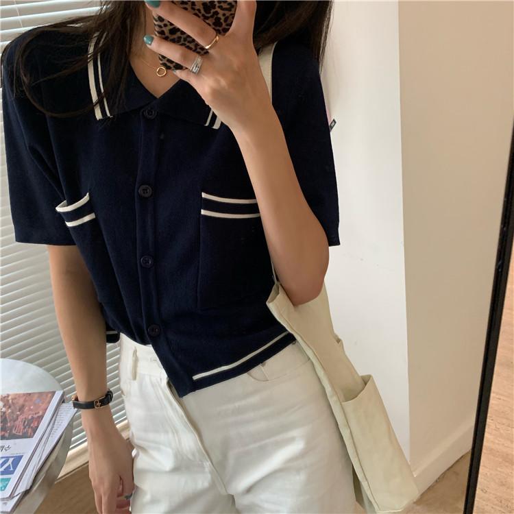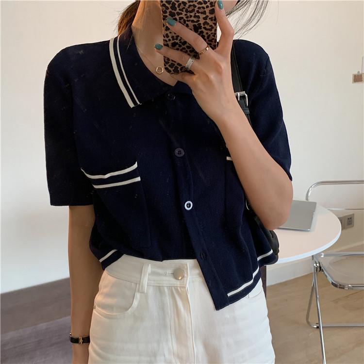 Cárdigan de Punto de Manga Corta con Cuello Polo para Mujer Verano 2024 Nuevo Estilo Coreano Corte Holgado Adelgazante Lindo Top Corto 7909 #