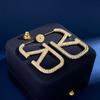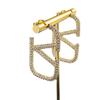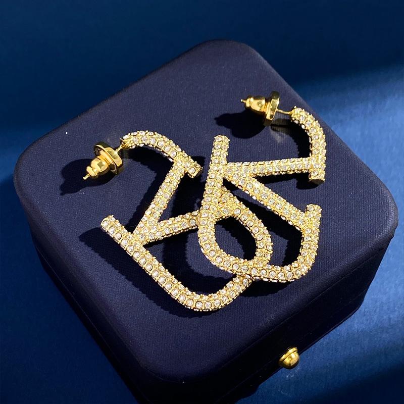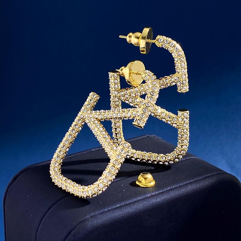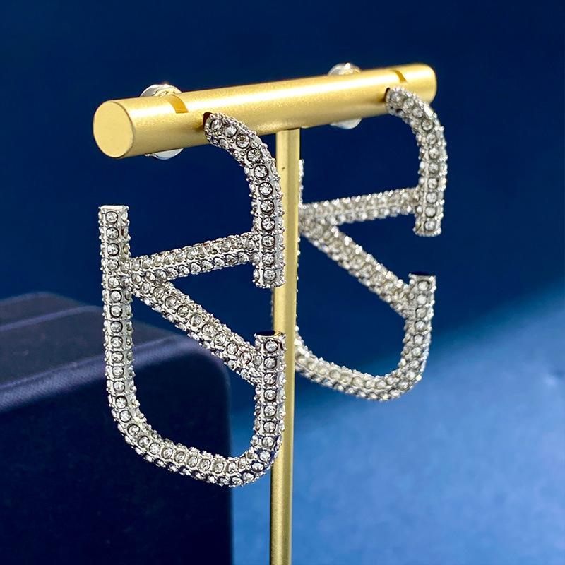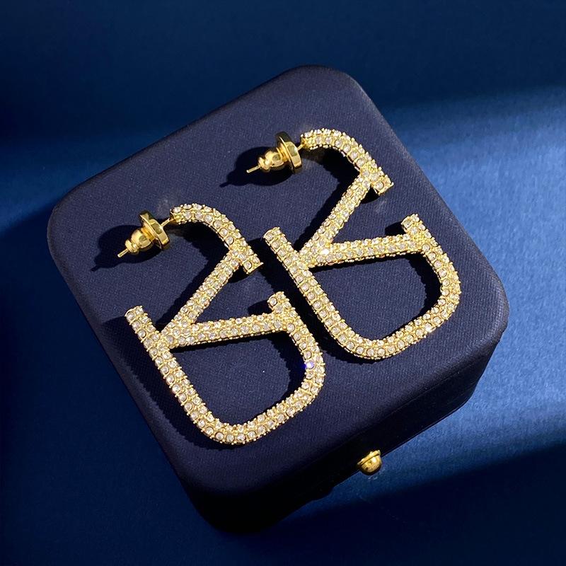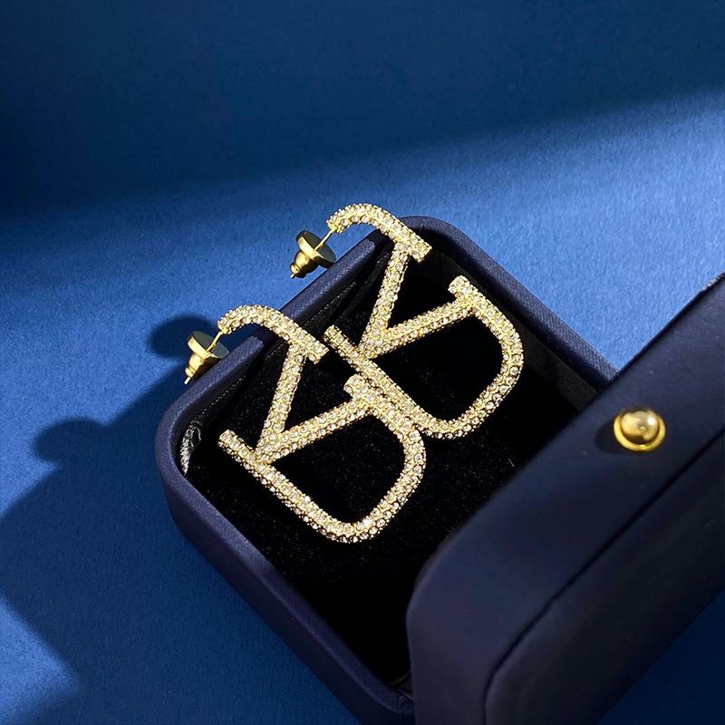 Aretes Letra V Europeos y Americanos Minimalistas Metálicos Diamante Completo Aretes de Tuerca Grandes