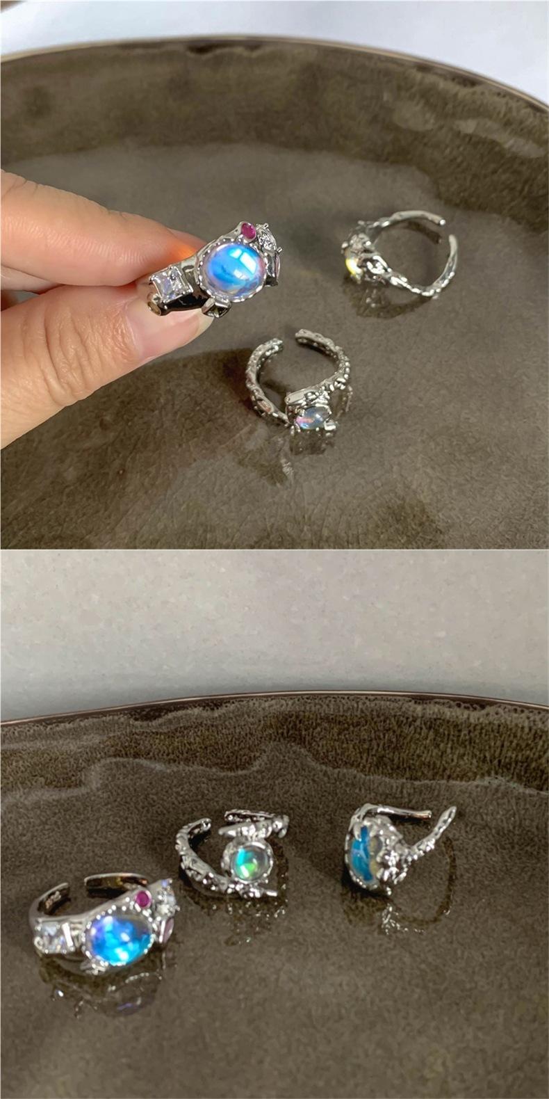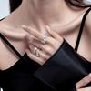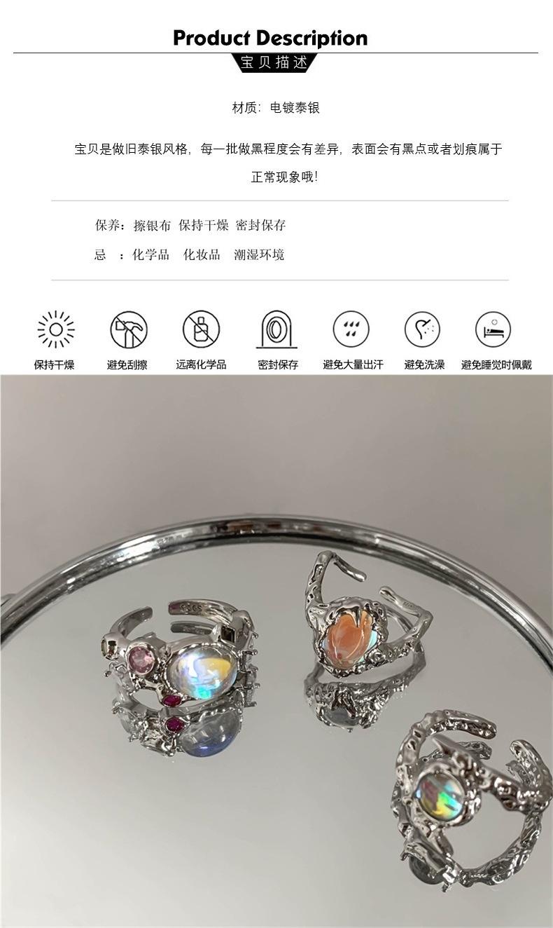 Anillo Asimétrico de Piedra Lunar Dulce y Fresco para Mujer, Retro Elegante, Anillo Abierto de Plata S925 Calado, Anillo Hip-Hop para Dedo Índice, Moderno