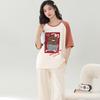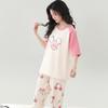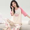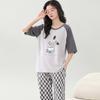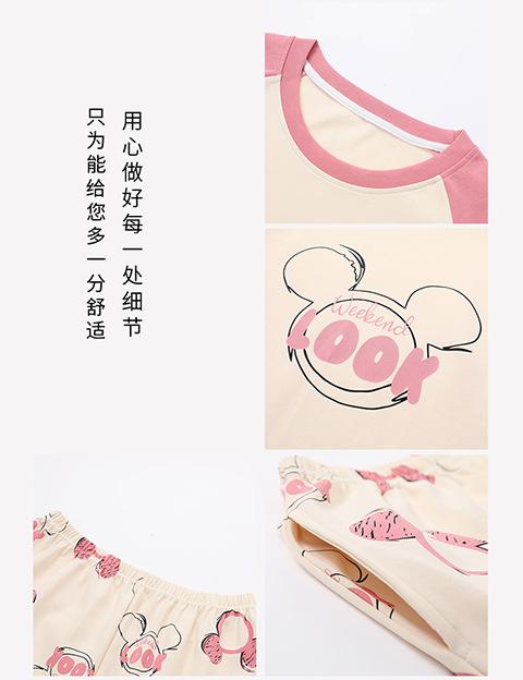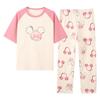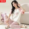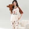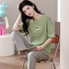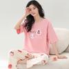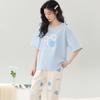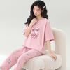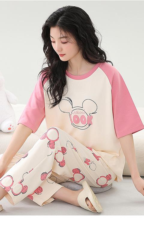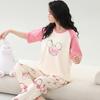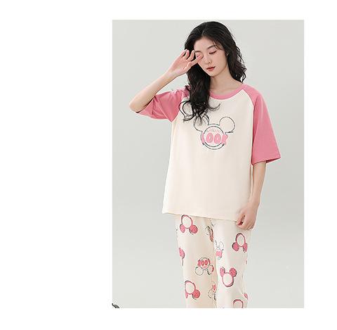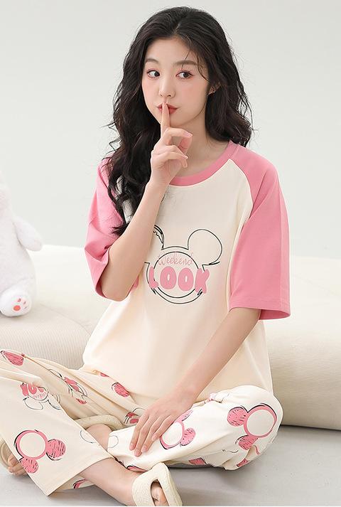 Pijamas Nuevos de Cuello Redondo, Pantalones de Manga Corta, Algodón Puro Fino de Primavera y Verano para Mujer, Dibujos Animados Casual Ropa para el Hogar, Traje Casual