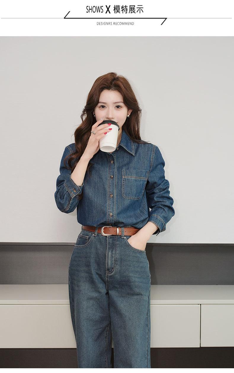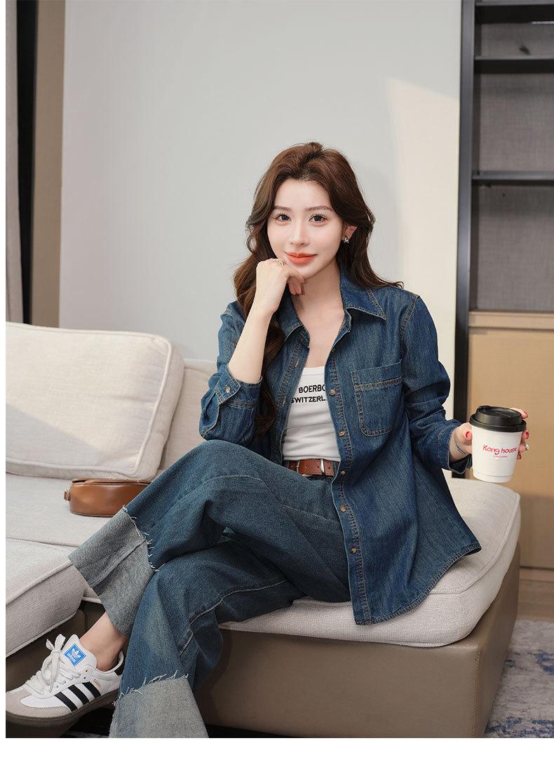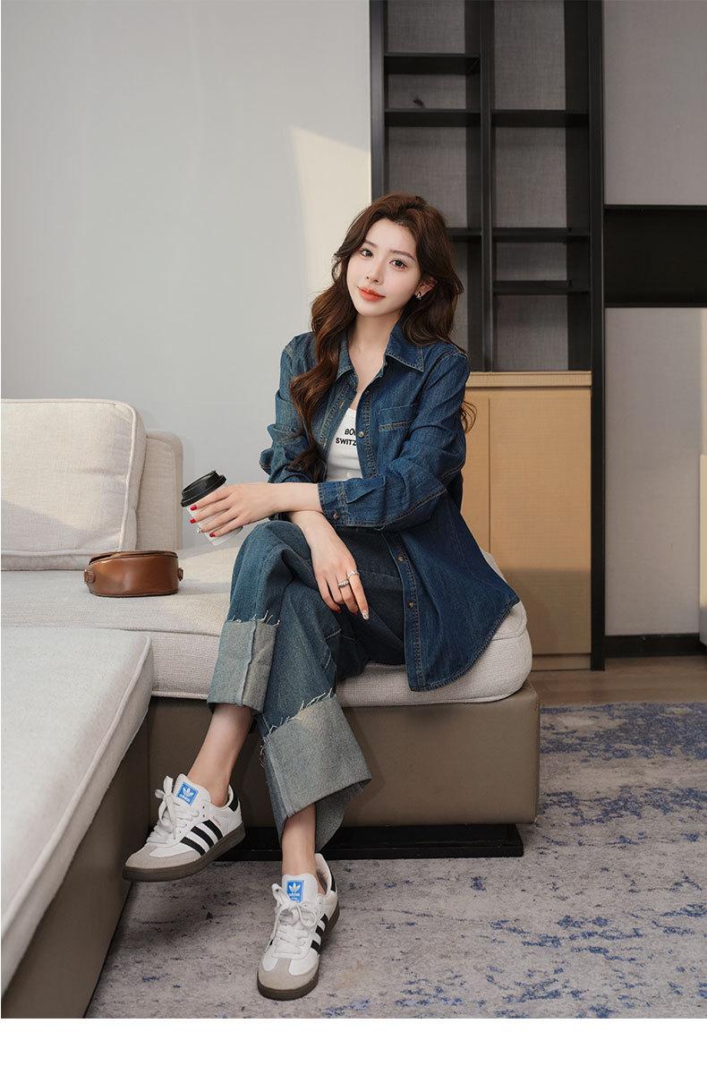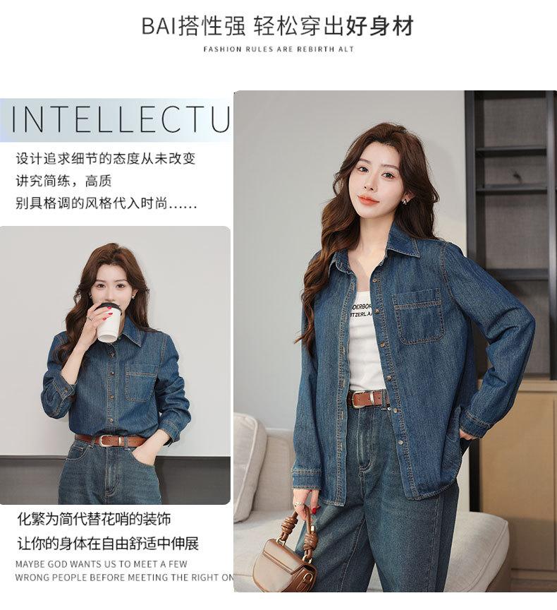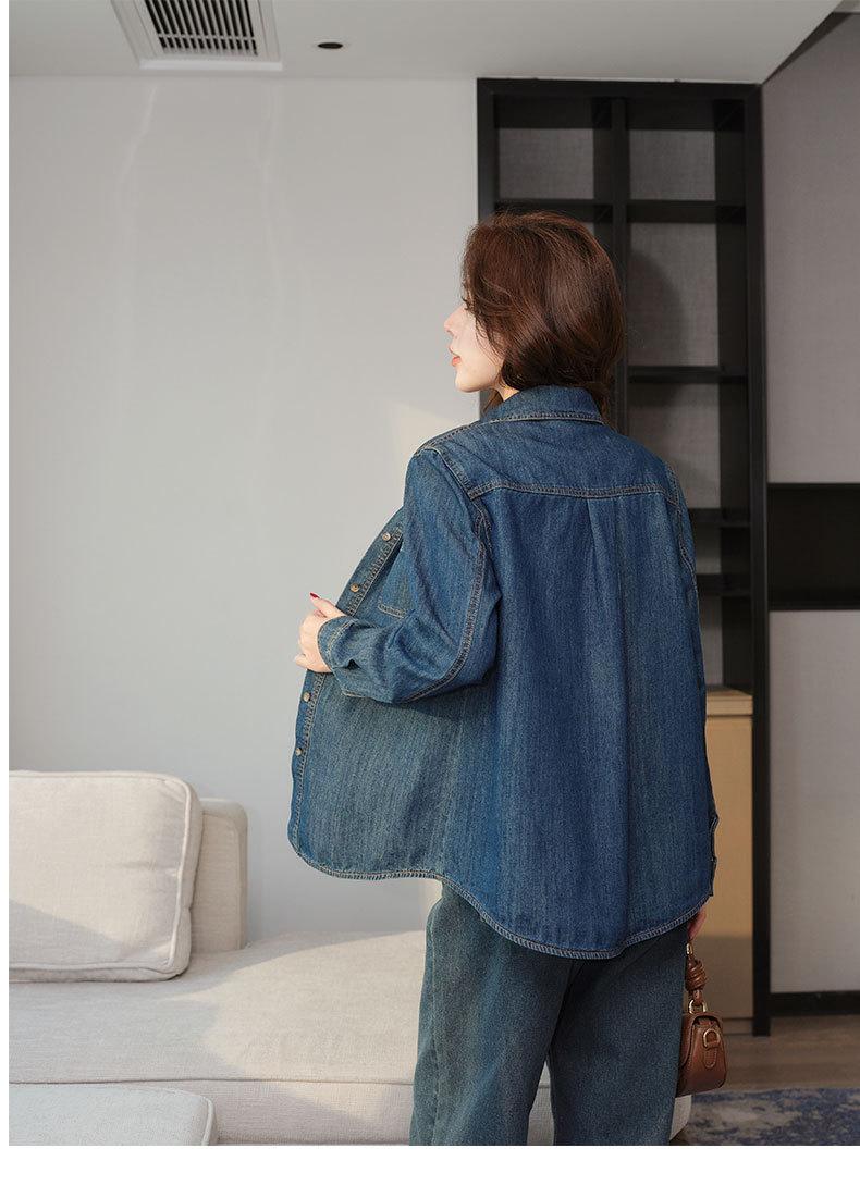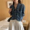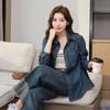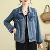 Imagen real de una chaqueta vaquera de manga larga estilo retro de Hong Kong con capas para mujer, primavera 2025.