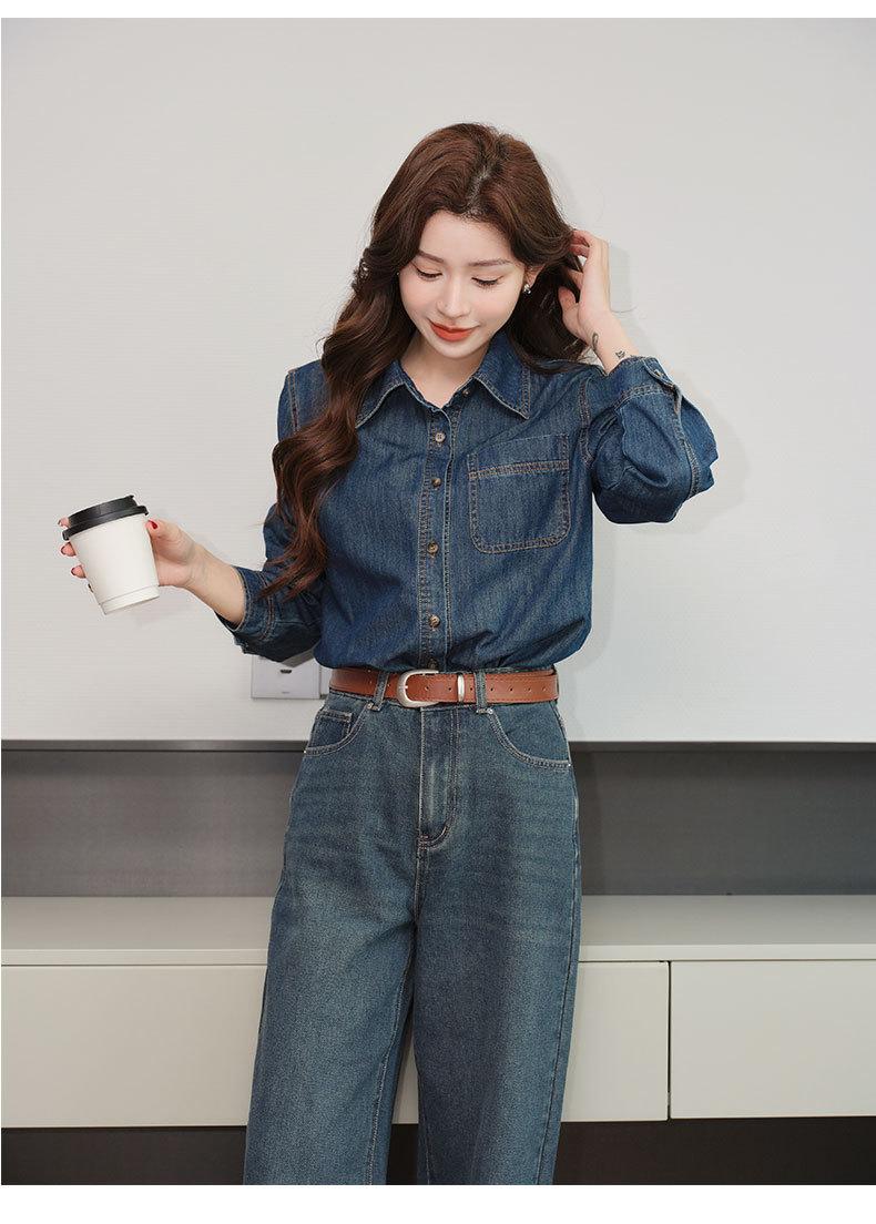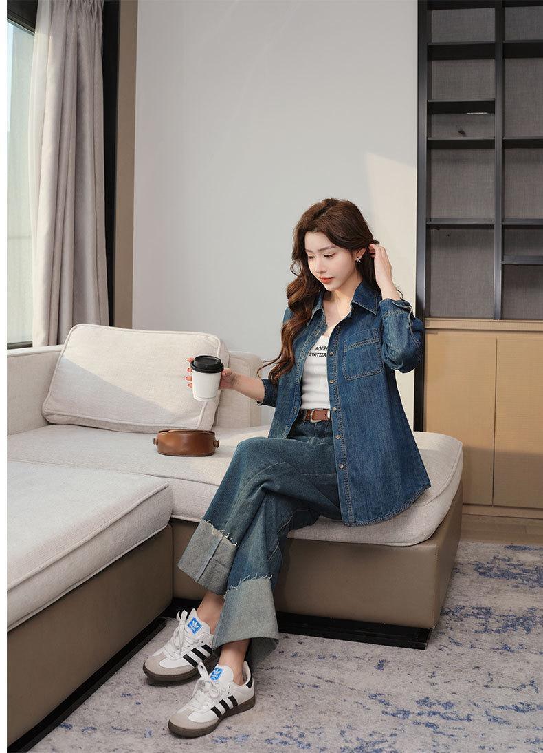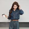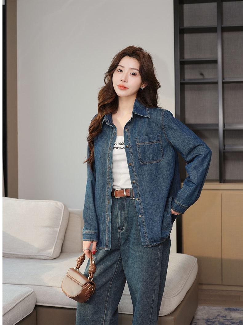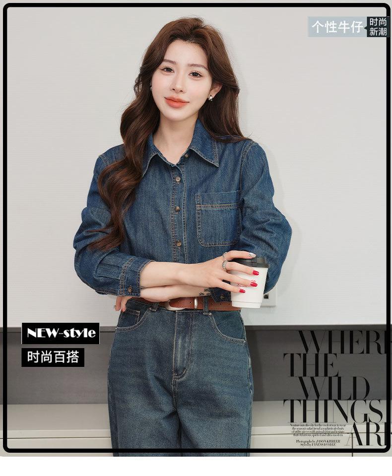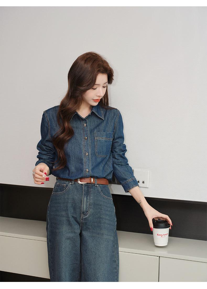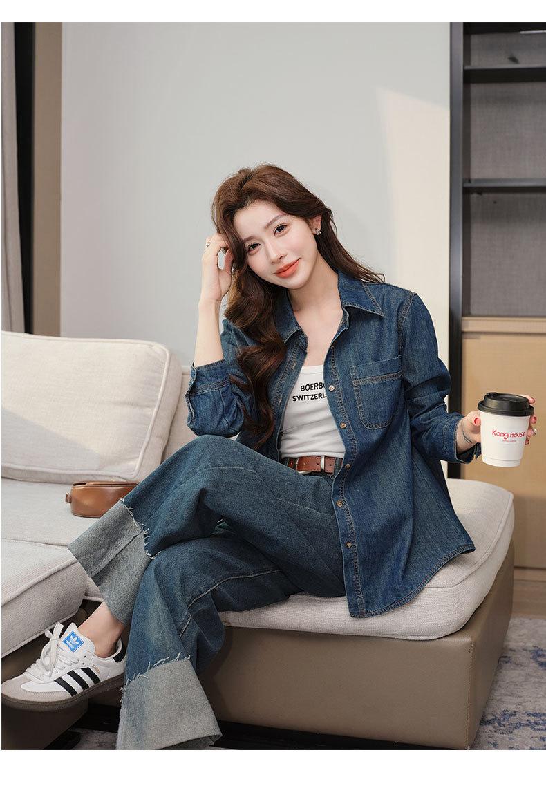 Imagen real de una chaqueta vaquera de manga larga estilo retro de Hong Kong con capas para mujer, primavera 2025.